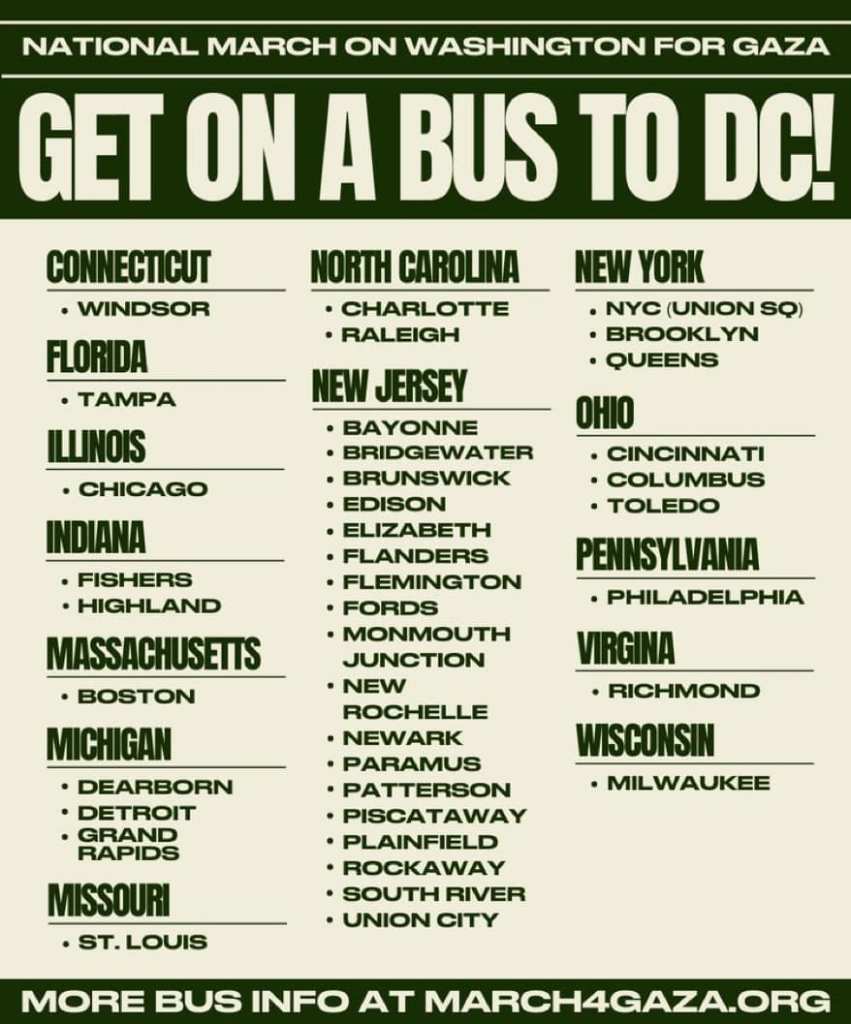 Categories Uncategorized Bus Information (Nationwide) for January 13, 2024 March on Washington for Gaza Post author By wibailoutpeople Post date January 10, 2024 https://march4gaza.org/ Share this: Click to share on X (Opens in new window) X Click to share on Facebook (Opens in new window) Facebook Like Loading... Related ← Milwaukee, Feb. 17, 2024: National Organizing Conference of the Coalition to March on the RNC → Madison, January 12, 2024: Songs for a Lasting Ceasefire – Concert at Tammy Baldwin’s Office