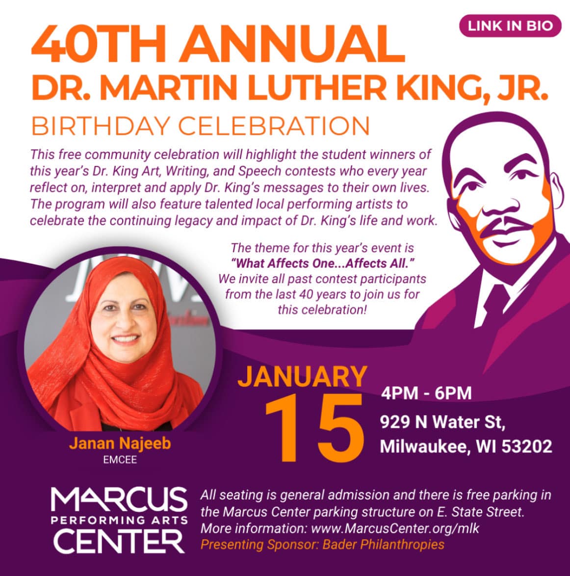 Categories Uncategorized Milwaukee, 40th Annual Dr. Martin Luther King Jr. Celebration – Janan Hajeeb, Emcee Post author By wibailoutpeople Post date January 12, 2024 Share this: Click to share on X (Opens in new window) X Click to share on Facebook (Opens in new window) Facebook Like Loading... Related ← Racine Coalition for Peace and Justice Stand for Peace, Free Palestine! January 13, 2024 → “Gaslighting & Cherry-Picking”: How Israel Is Defending Itself at World Court on Charges of Genocide