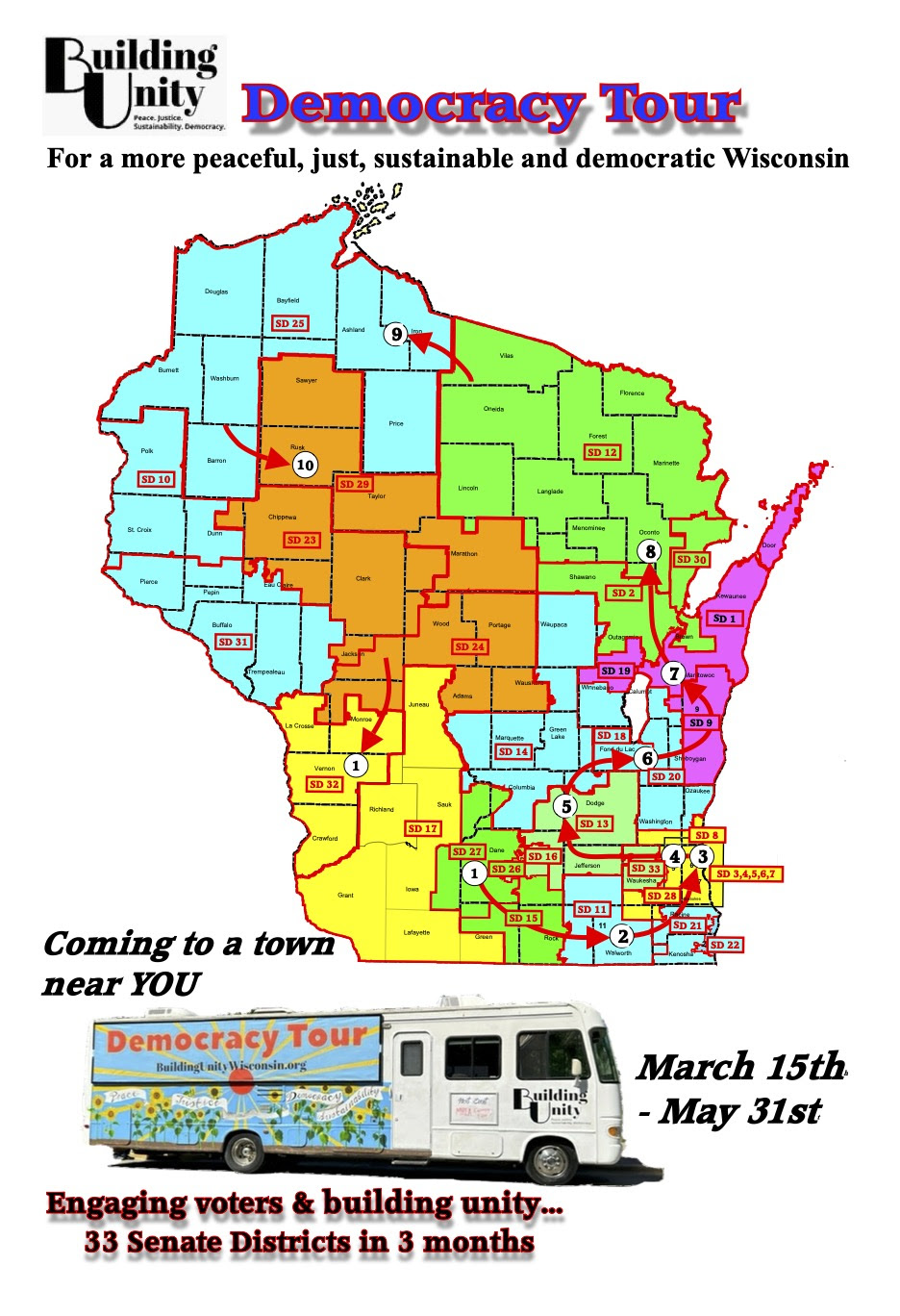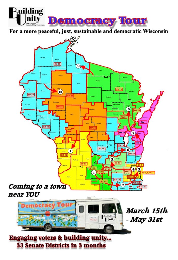 Help us meet our deadline of 1/22! We need volunteers to help us with finding places to park the UnityMobile and host tour stop events. If you can help, please call 608-630-3633. We are sending out these invitations statewide. Depending on the response that we get we will decide by January 22nd if we have the support we need to pull off this project. Read more below.