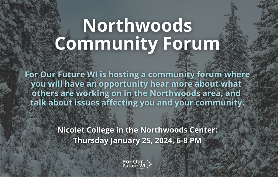 For Our Future, with support of Project North, Northwoods Area Progressives, and Nicolet College, are holding a casual event to get people together! This will be an opportunity for small businesses, local non-profits, and individuals active in the community to share what they are working on, and to network and connect with others.