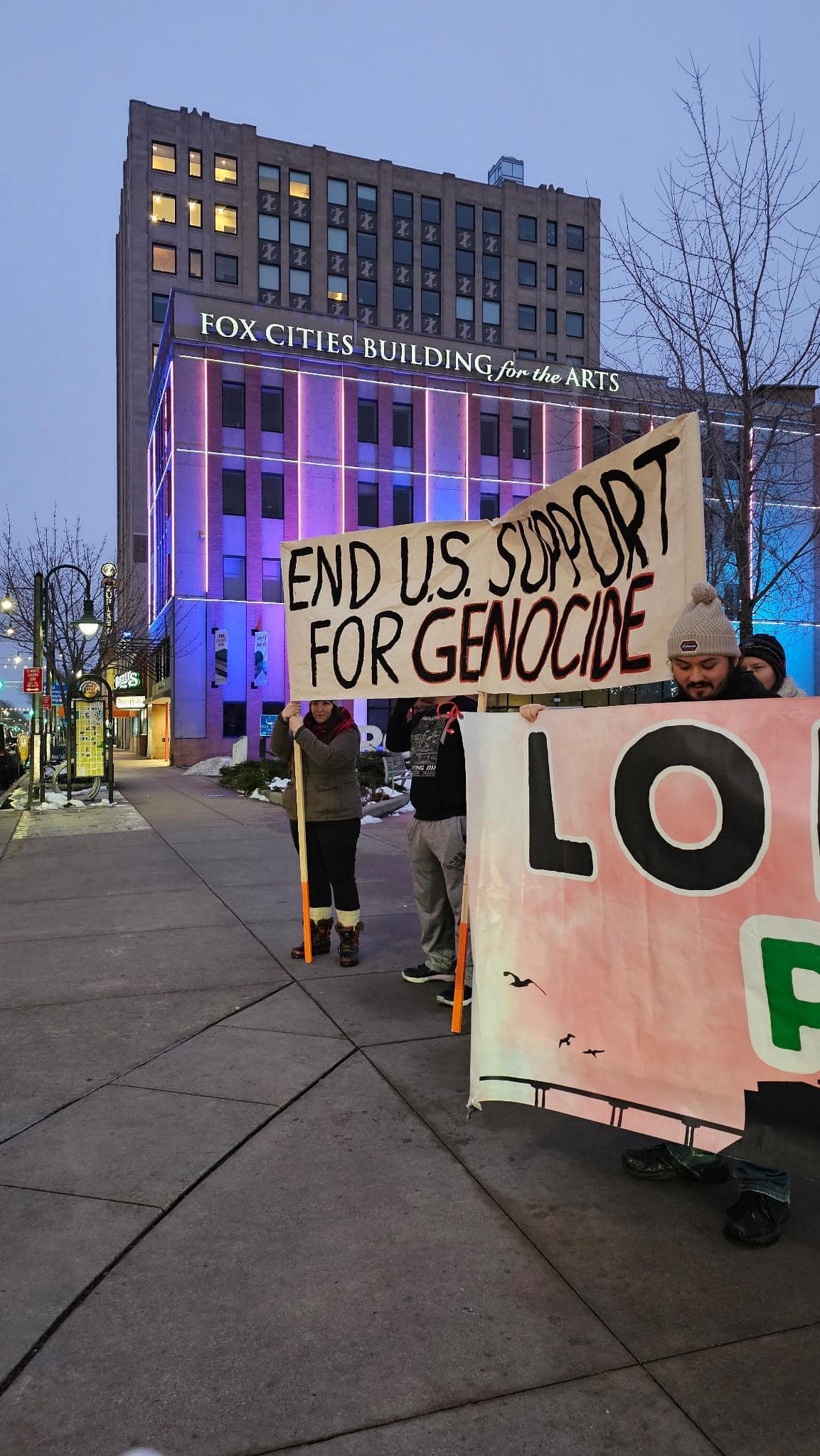 Categories Uncategorized Appleton: Free Palestine! Banner Drop and Rally Post author By wibailoutpeople Post date January 28, 2024 January 27, 2024 Appleton, Wisconsin January 27, 2024 Appleton, Wisconsin Share this: Click to share on X (Opens in new window) X Click to share on Facebook (Opens in new window) Facebook Like Loading... Related ← Green Bay, January 28, 2024: Free Palestine! Banner Drop & Rally → Russia presses Ukraine on all fronts