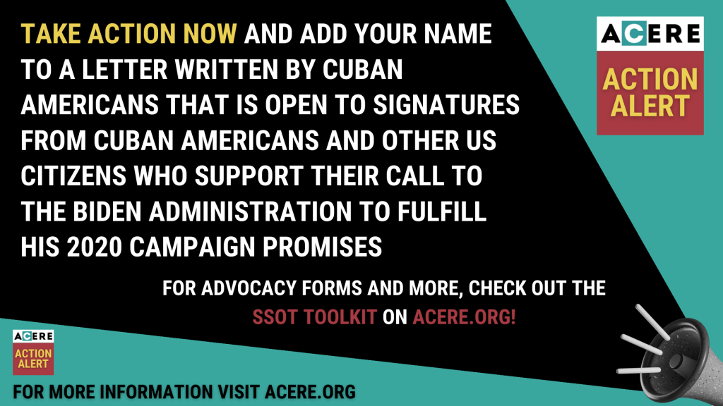 Sign or endorse Please sign or endorse this letter by February 23rd. The letter will be delivered to Biden soon after. A letter written by Cuban Americans that is open to signatures from Cuban Americans and other US citizens who support their call to the Biden Administration to fulfill his 2020 campaign promises.