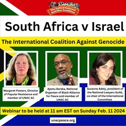 An international coalition has been formed to support South Africa’s case against Israel for genocide. Over 2000 organizations have joined the coalition. The webinar includes people who helped form the coalition.