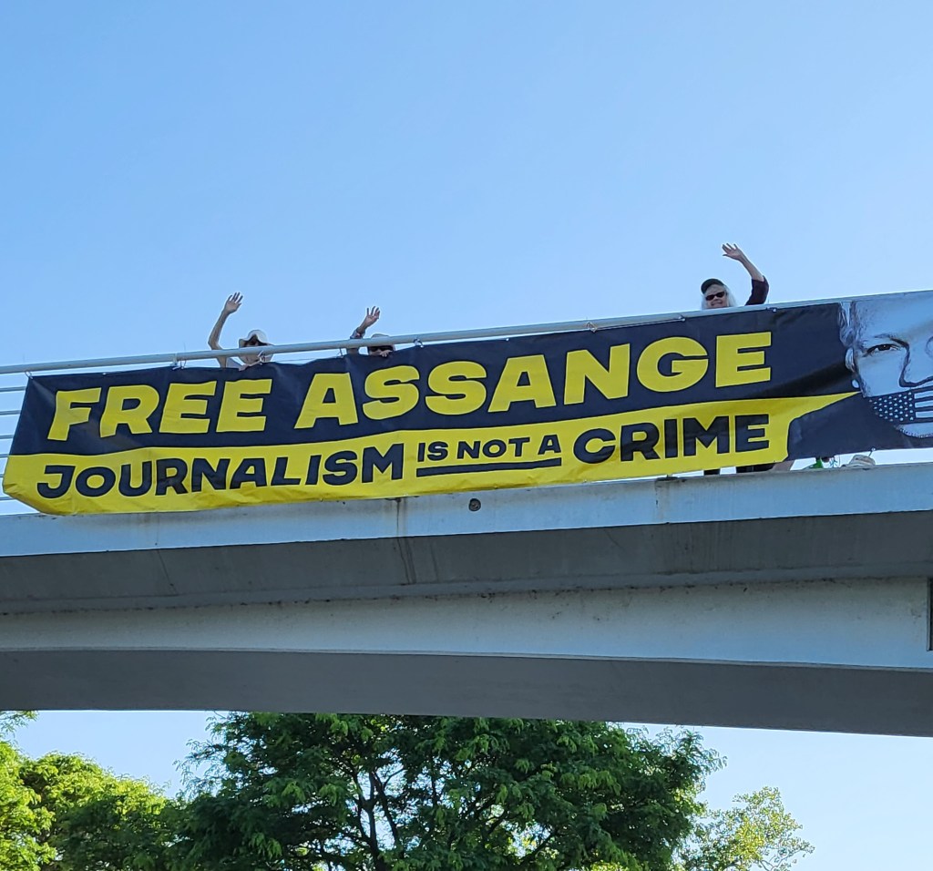 We will have a banner drop for Assange at the Brady Street walking bridge over Lincoln Memorial Drive on Tuesday, February 20 at 4 pm. This is the place we have gathered before that is accessible from both sides of the road. This is to highlight “DAY X – February 20 and 21.”