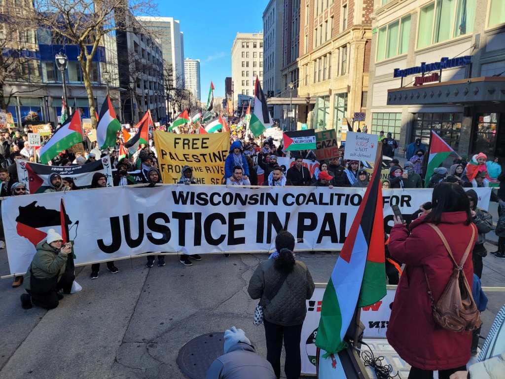 The Daily Cardinal Feb.13, 2024 protest report: https://www.dailycardinal.com/article/2024/02/pro-palestine-groups-protest-arms-manufacturers-at-uw-madison-engineering-career-fair?ct=content_open