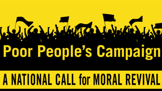The Poor People’s Campaign is sponsoring a simultaneous day of direct action at statehouses all across the country whose aim is to bring together thousands of poor and low-wealth people and their allies to demand a moral agenda from our lawmakers at the state level. Their invitation: “Let’s join together to demand living wages, voting rights, healthcare, fully-funded public education, a healthy environment, clean water, affordable and decent housing, an end to the war economy, militarism and genocide, an end to poverty, and MORE!”