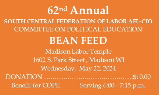 Categories Uncategorized Madison Labor Temple Bean Feed May 22, 2024 Post author By wibailoutpeople Post date March 20, 2024 Volunteer for Bean Feed Here https://www.scfl.org Share this: Click to share on X (Opens in new window) X Click to share on Facebook (Opens in new window) Facebook Like Loading... Related ← May 11, 2024: National Association of Letter Carriers (NALC) Stamp Out Hunger Food Drive → Labor Radio on WORT