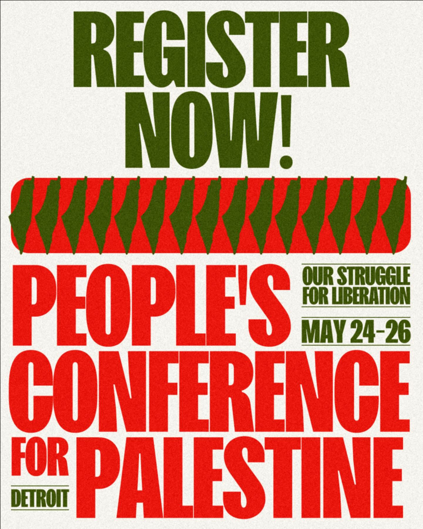 REGISTRATION IS OPEN TO THE PUBLIC! Register at peoplesconferenceforpalestine.org/register. (