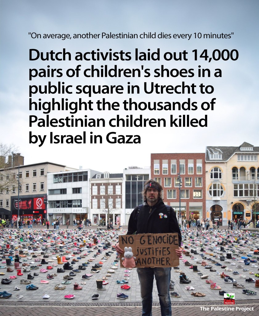 Categories Uncategorized On average, another Palestinian child dies every 10 minutes … Post author By wibailoutpeople Post date March 26, 2024 The Palestine Project Share this: Share on X (Opens in new window) X Share on Facebook (Opens in new window) Facebook Like Loading... Related ← Madison, March 30, 2024: Aaron Bushnell Memorial → Anti-war protest vote campaign launches in Wisconsin
