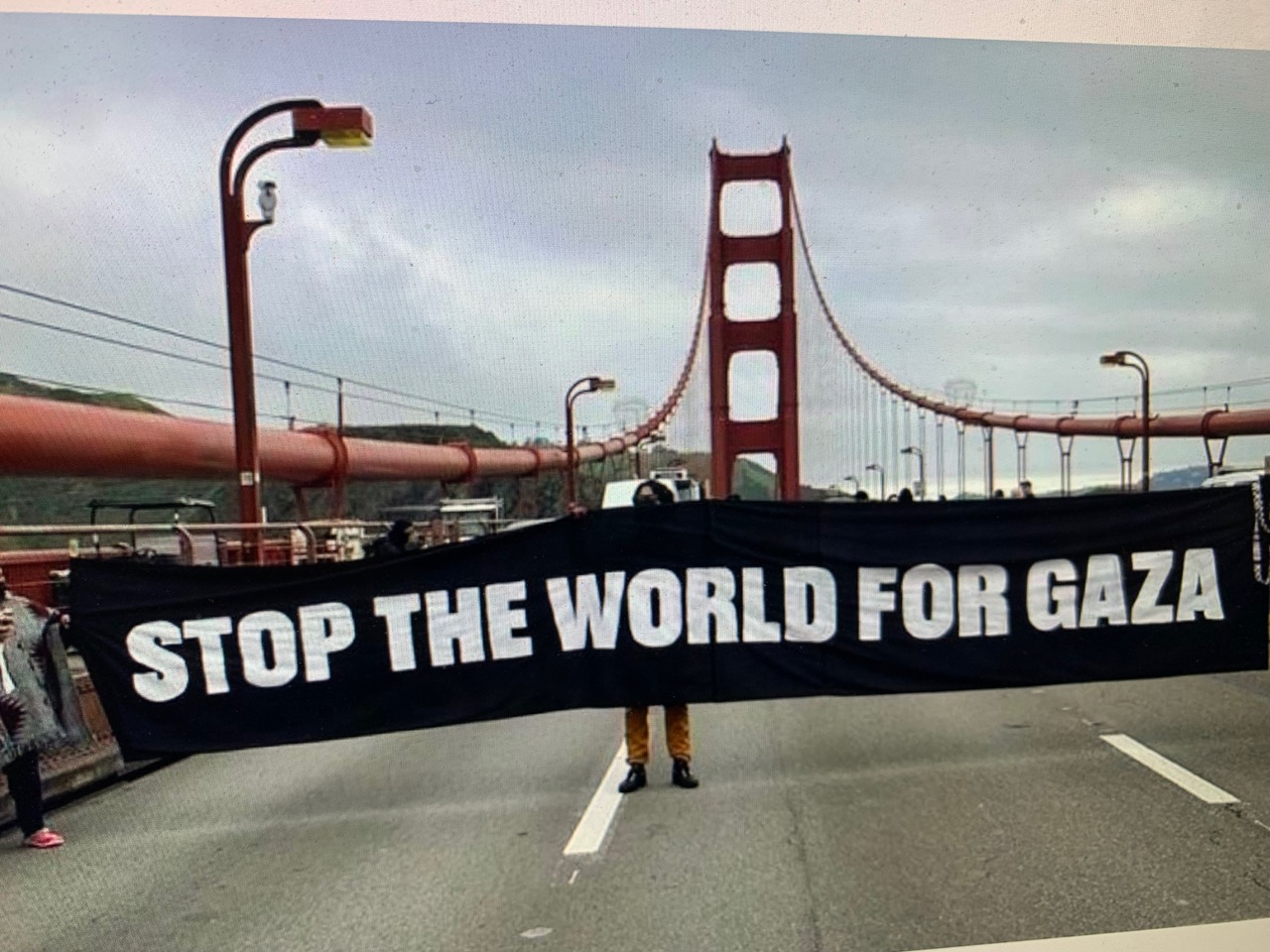 Categories Uncategorized Golden Gate Bridge: NOW’S THE TIME! – STOP THE WORLD FOR GAZA! Post author By wibailoutpeople Post date April 23, 2024 Share this: Share on X (Opens in new window) X Share on Facebook (Opens in new window) Facebook Like Loading... Related ← Mumia Abu-Jamal’s 70th Birthday April 24, 2024 – Free Him NOW! → ADC, CAIR-NJ File Title VI Complaint Against Rutgers University