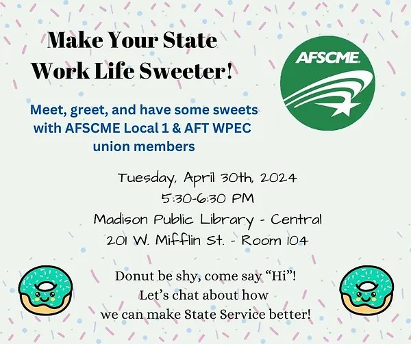 Categories Uncategorized Madison, April 30, 2024: Meet & Greet with State Workers (AFSCME, AFT) Post author By wibailoutpeople Post date April 25, 2024 AFSCME Wisconsin State Employees Union (WSEU) – Local 1 Share this: Share on X (Opens in new window) X Share on Facebook (Opens in new window) Facebook Like Loading... Related ← Workers Memorial Day – We Remember Our Fellow Workers, Always → UAW President Shawn Fain on Building Union Power