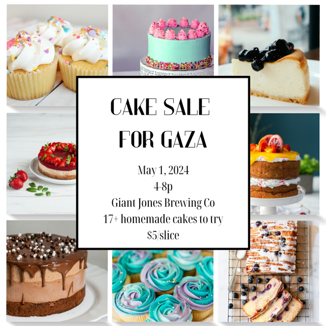 Categories Uncategorized Madison, May 1, 2024: Cake Sale for Gaza Post author By wibailoutpeople Post date April 26, 2024 Share this: Share on X (Opens in new window) X Share on Facebook (Opens in new window) Facebook Like Loading... Related ← Madison, May 1, 2024: Pizza & Music for Gaza (and NEW Cake Sale!) – May Day Pizza & Benefit for Gaza → Madison, May 4, 2024: Read Palestine! Virtual Book Club: Things You May Find Hidden in My Ear