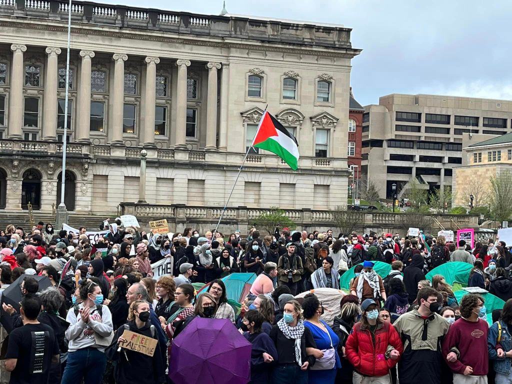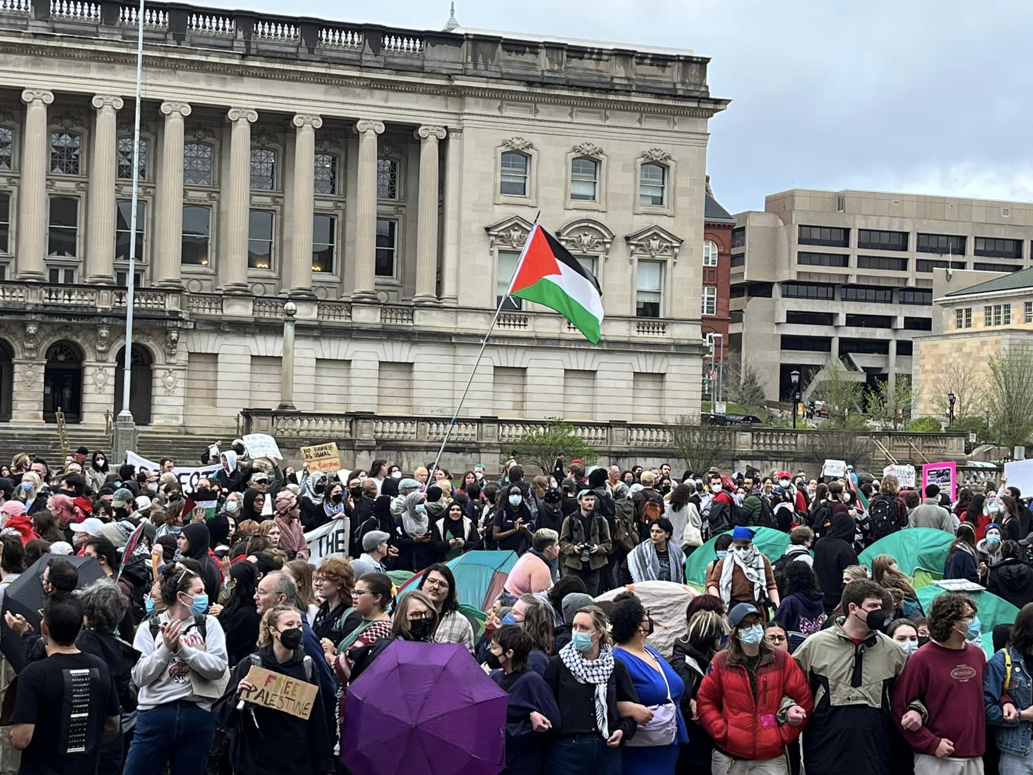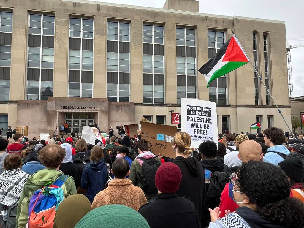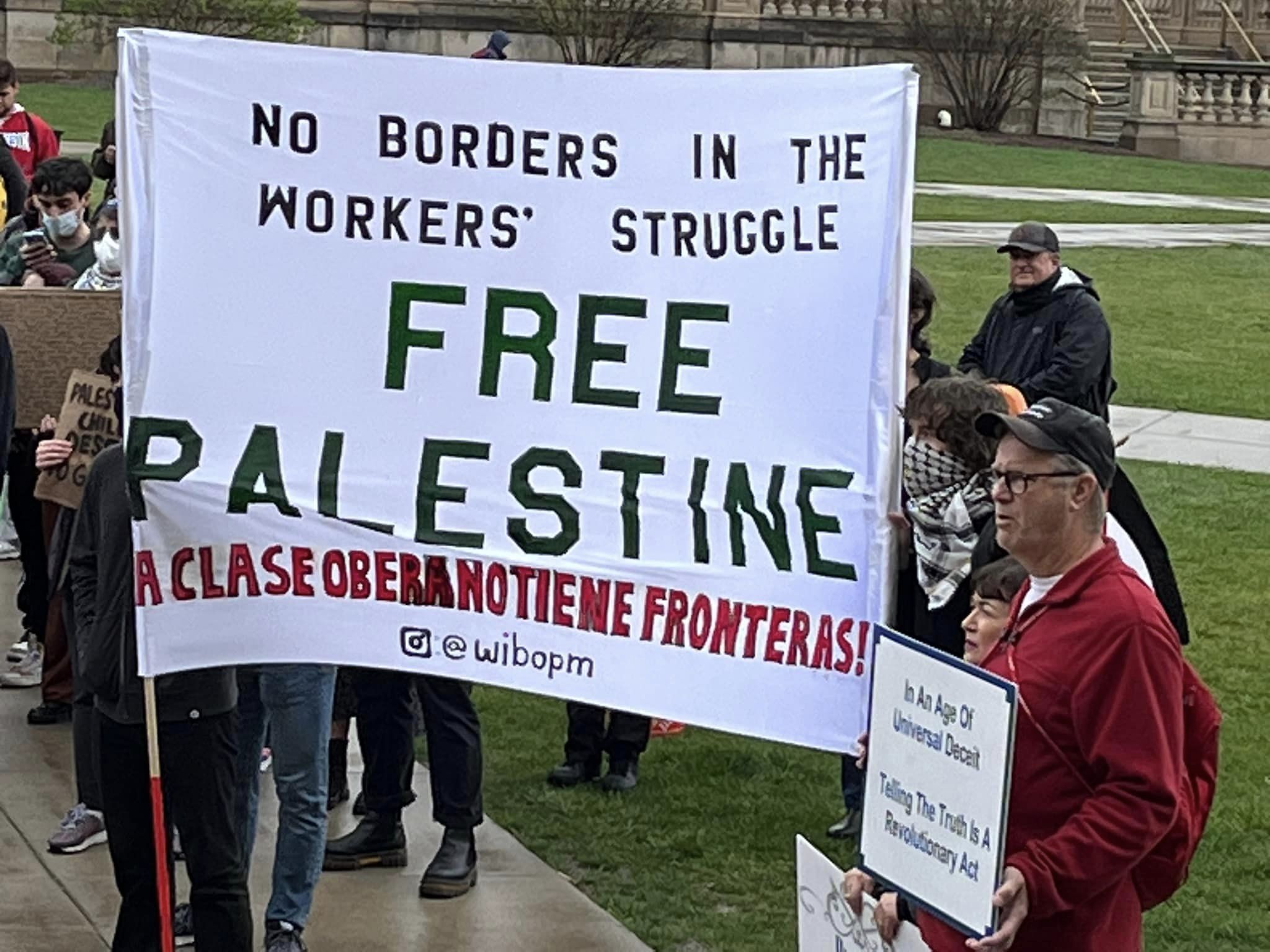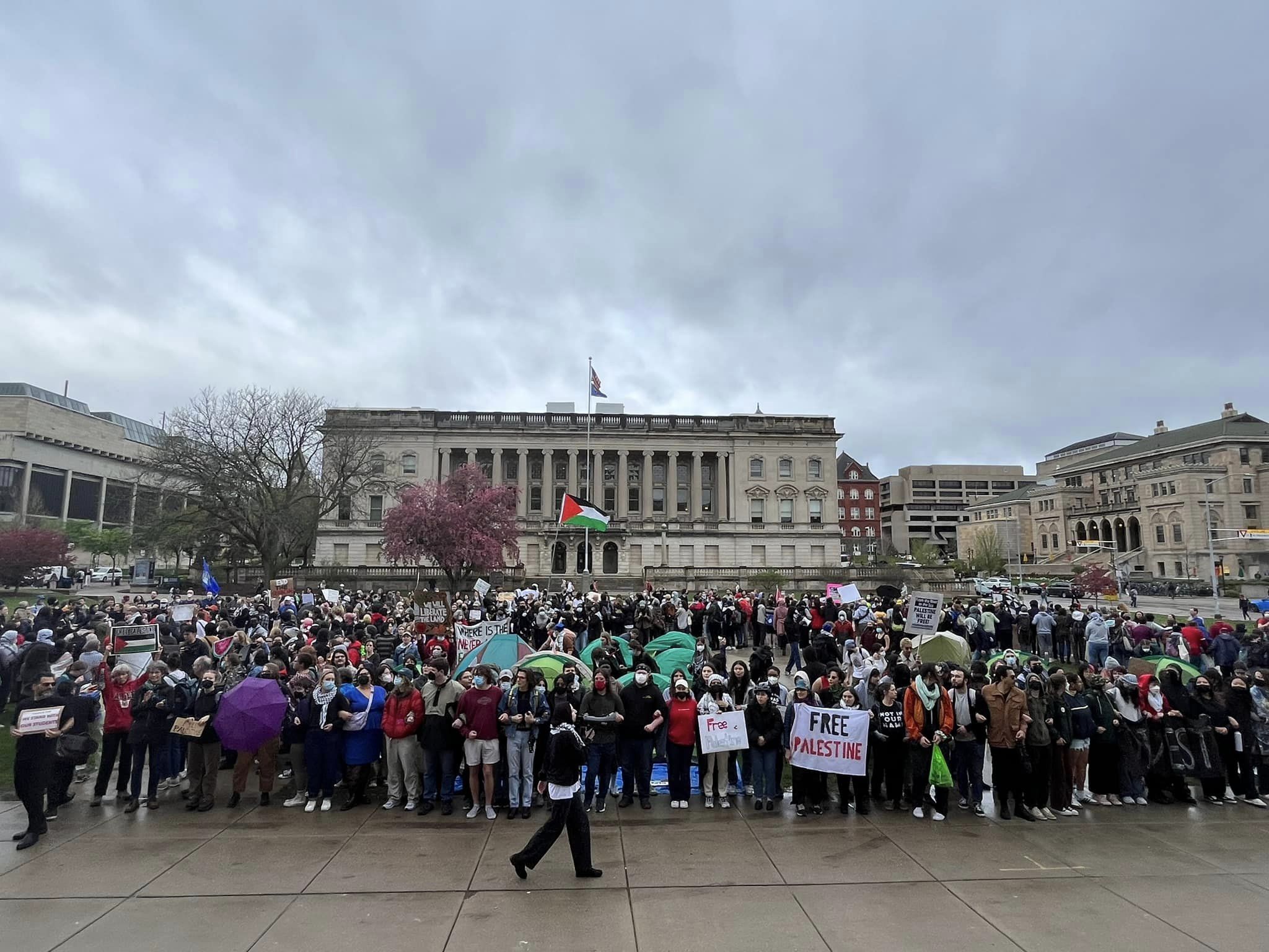 Hundreds of students, workers and community supporters gathered for a Free Palestine rally at UW Madison April 29, 2024. Immediately following the rally an encampment in solidarity with Palestine began and is now in operation.