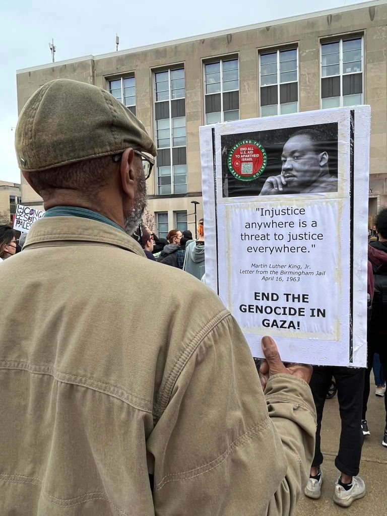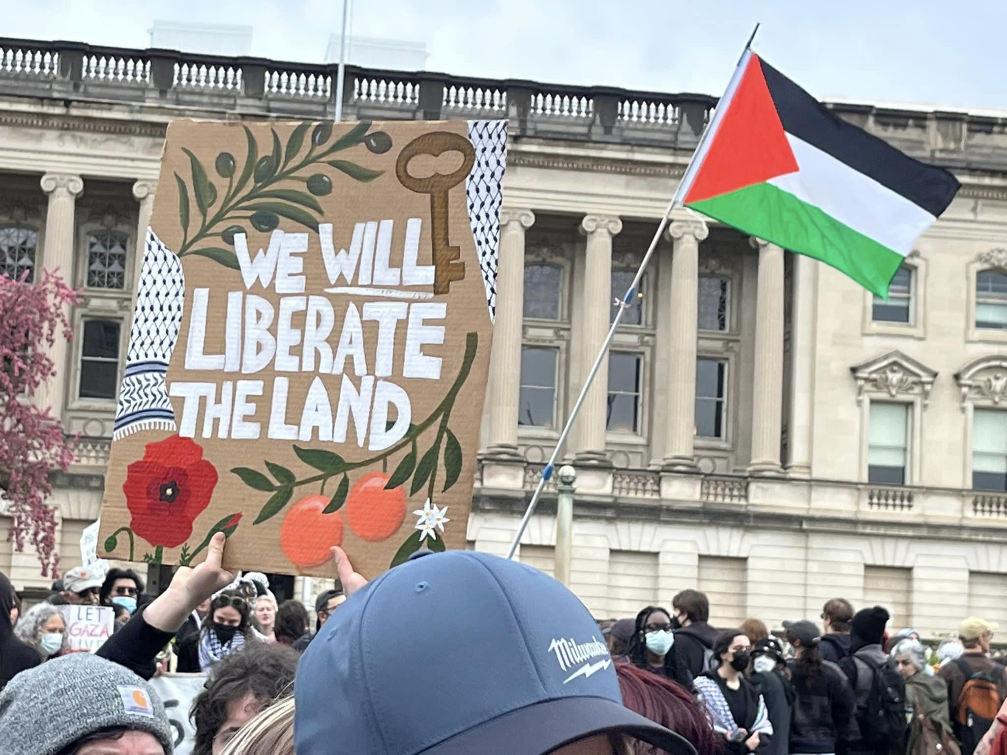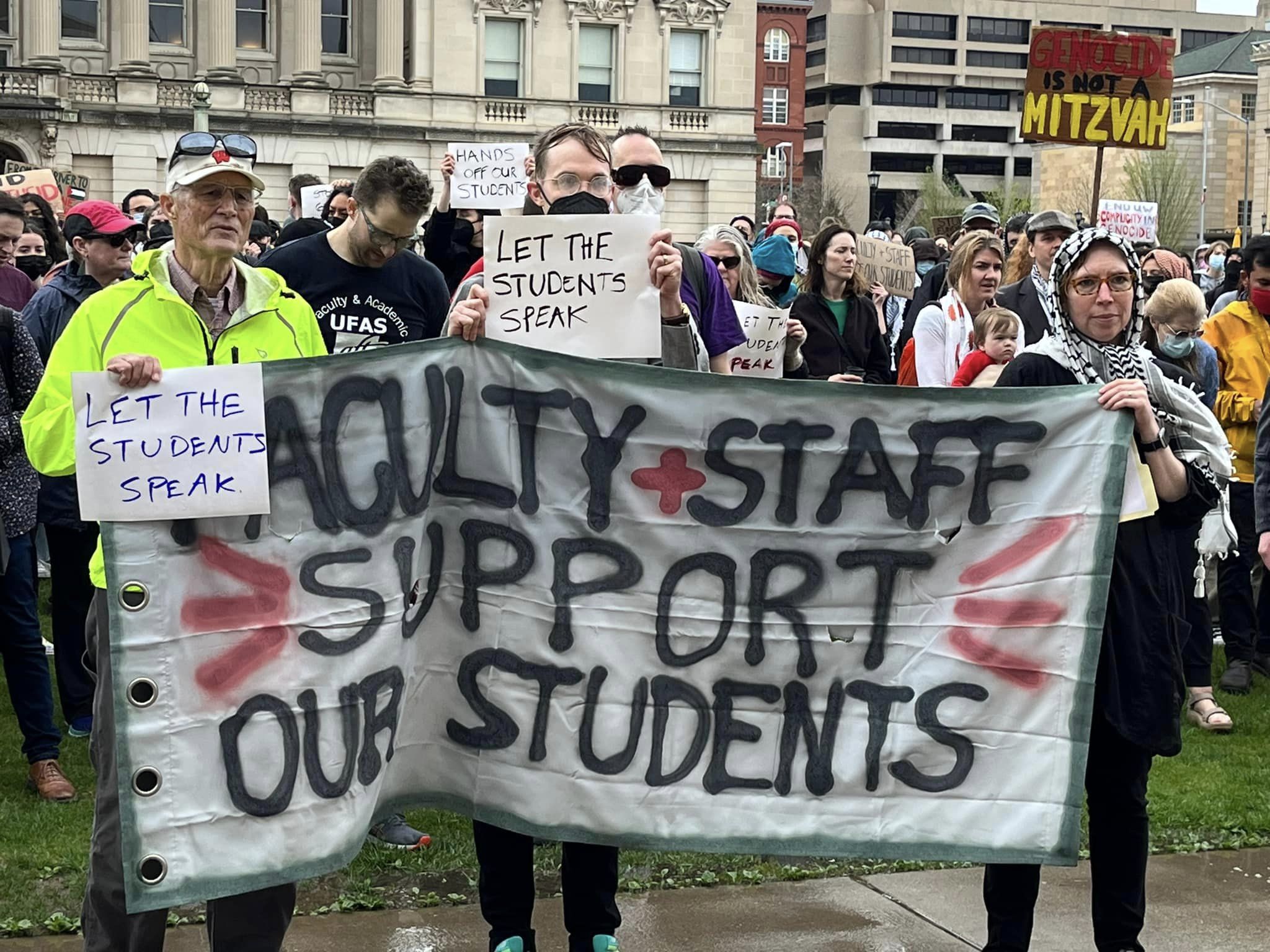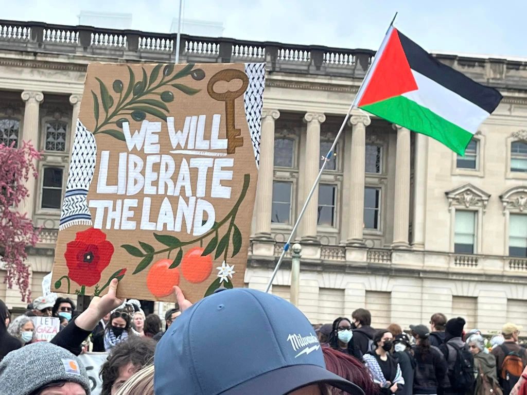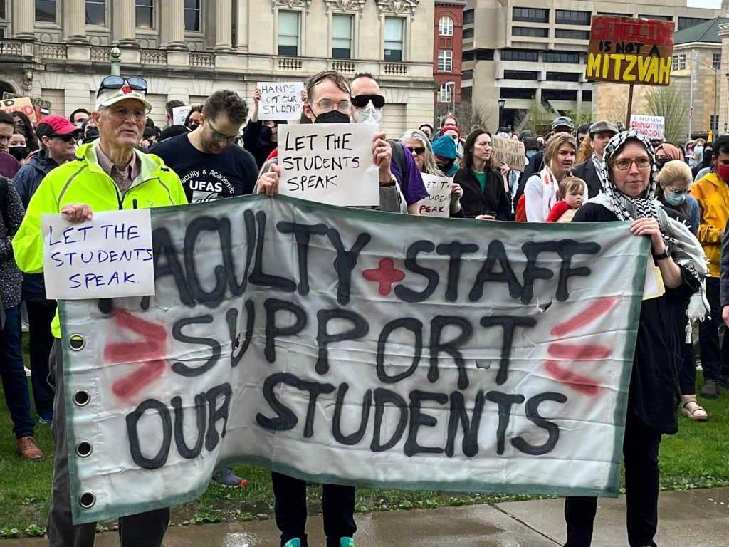 Hundreds of students, workers and community supporters gathered for a Free Palestine rally at UW Madison April 29, 2024. Immediately following the rally an encampment in solidarity with Palestine began and is now in operation.
