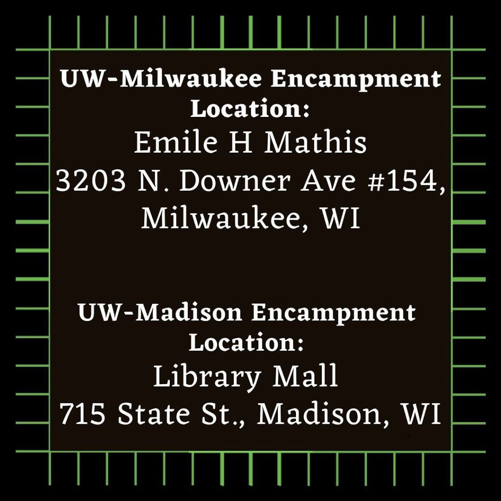 Categories Uncategorized UW Milwaukee and UW Madison Palestine Encampments – Locations Post author By wibailoutpeople Post date April 29, 2024 @msauwm sjpuwmadisonand wisc_ydsa Wisconsin Coalition for Justice in Palestine Share this: Share on X (Opens in new window) X Share on Facebook (Opens in new window) Facebook Like Loading... Related ← Ryan Clancy: ‘I Stand with the UW-Milwaukee Student Organizers’ → Dr. Kwame Nkrumah