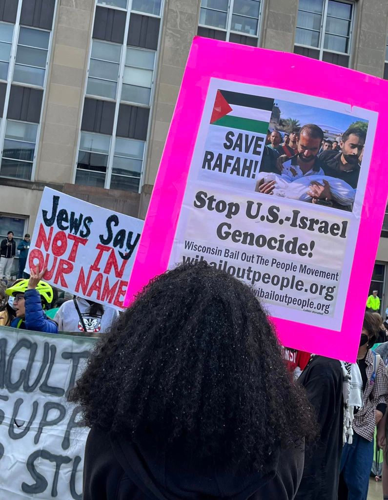 Hundreds of students and faculty at UW Madison (as well as UW-Milwaukee) joined the growing campus protests around the US. against the slaughter in Gaza. (Directory of protests here).