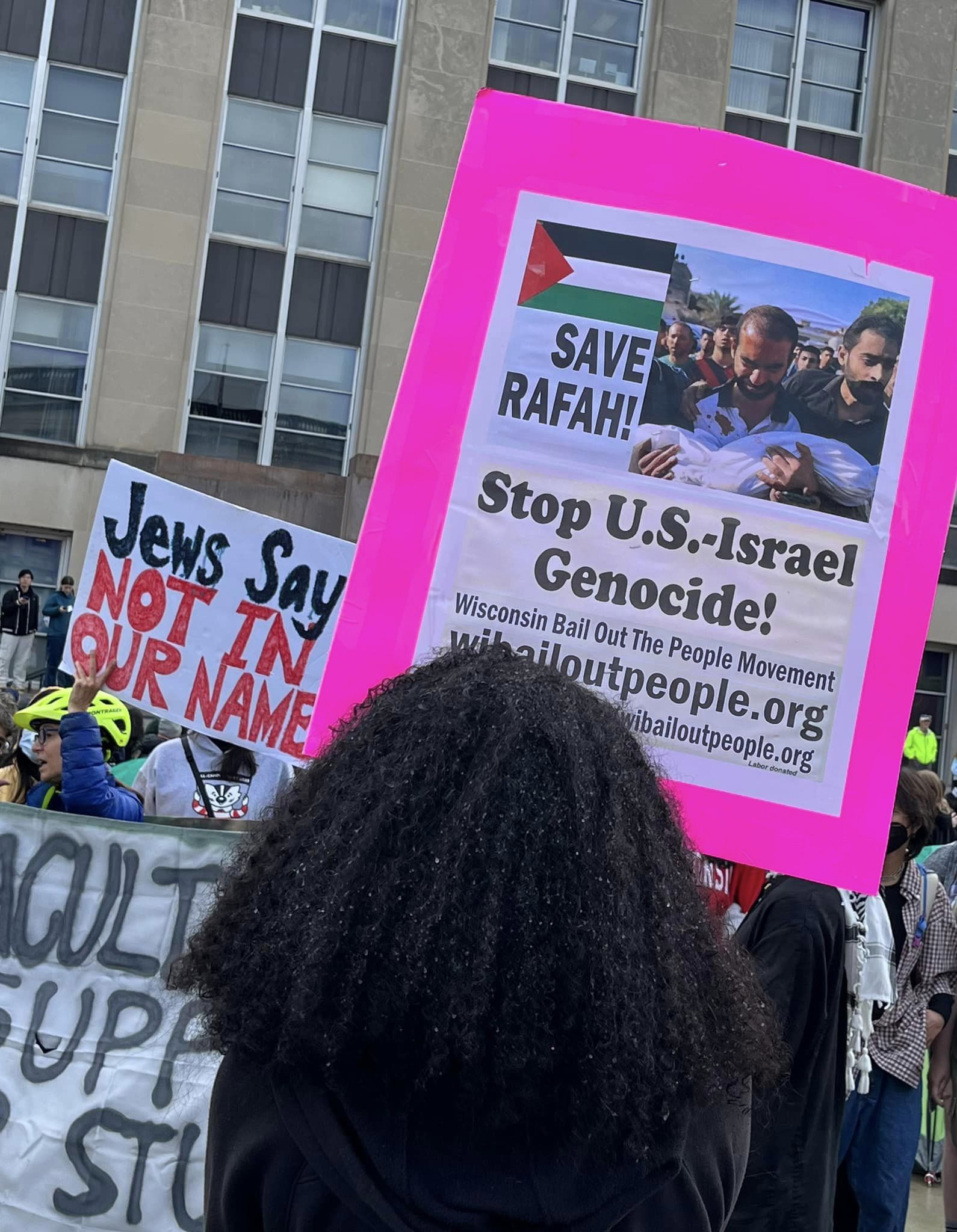 Hundreds of students and faculty at UW Madison (as well as UW-Milwaukee) joined the growing campus protests around the US. against the slaughter in Gaza. (Directory of protests here).
