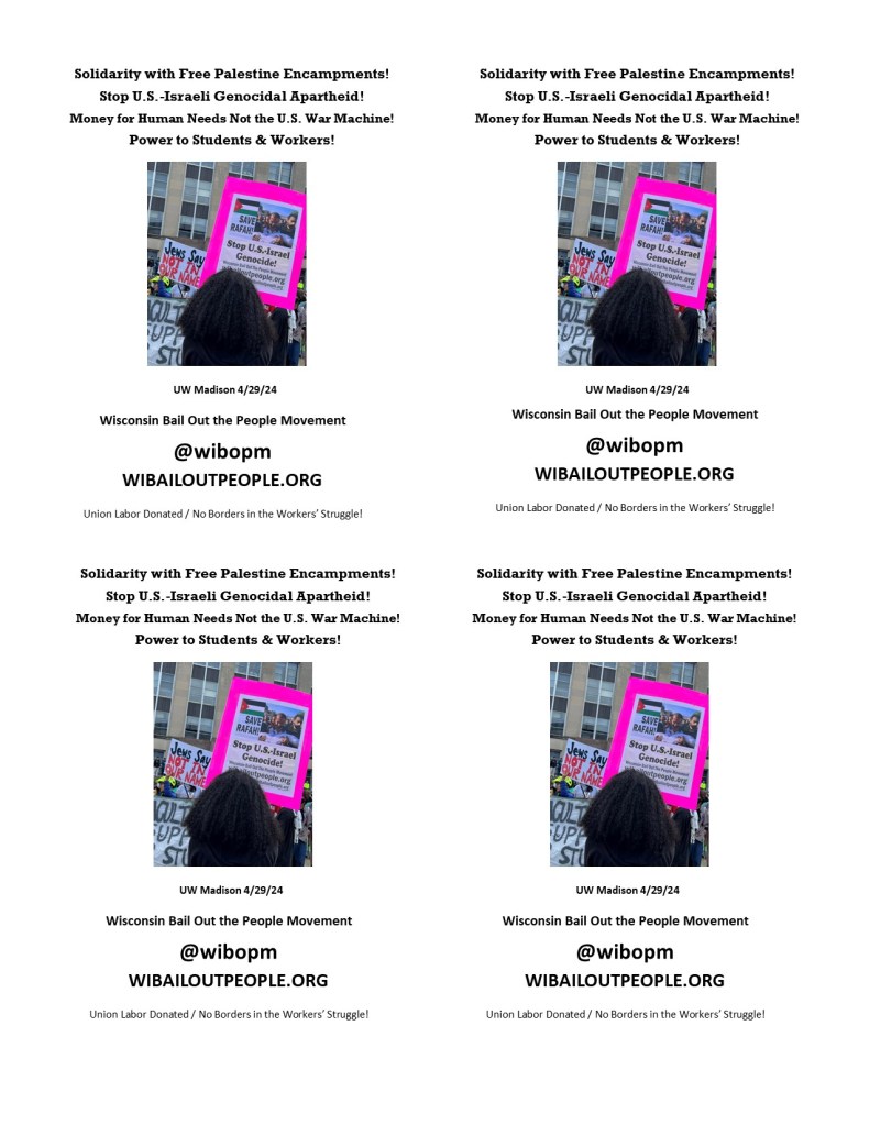 Categories Uncategorized @wibopm – Solidarity With Free Palestine! Encampments! (Leaflet) Post author By wibailoutpeople Post date May 1, 2024 Share this: Click to share on X (Opens in new window) X Click to share on Facebook (Opens in new window) Facebook Like Loading... Related ← Wisconsin: Support Free Palestine! Encampments at UW Madison, Milwaukee, Stevens Point and Whitewater (Listings) → Which Side Are You On? REMIX – Rebel Diaz ft. Dead Prez and Rakaa Iriscience