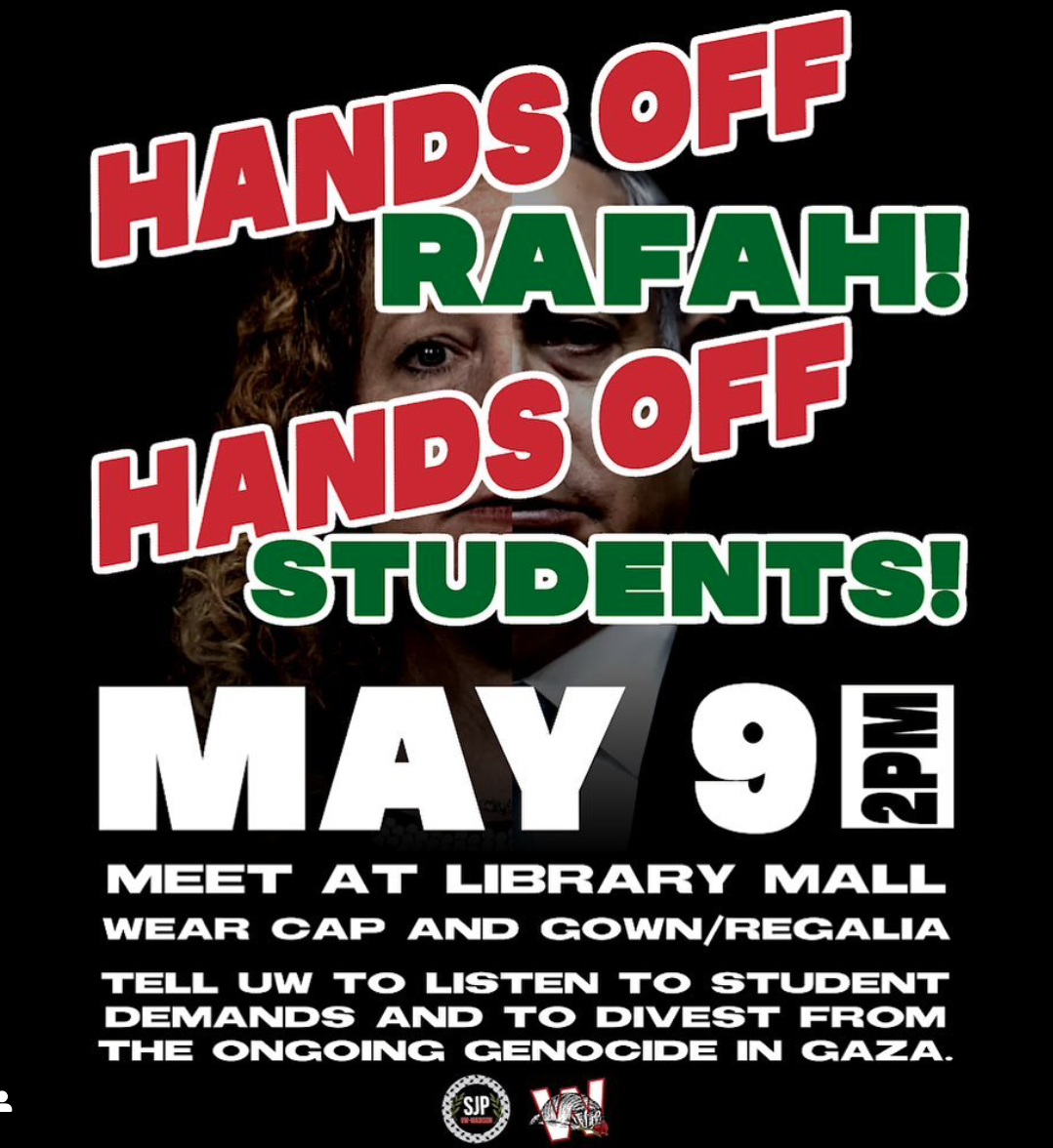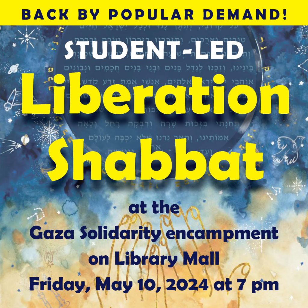 Thursday May 9: 2 pm: Hands Off Rafah, Hands Off Students: Library Mall RallyFriday, May 10: Student-Led Liberation Shabbat service at Library Mall