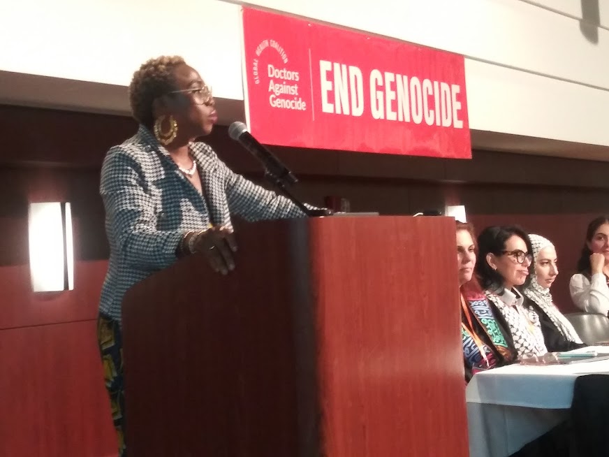The event was organized by physicians, medical school professors and researchers to shed light on the genocide taking place in the Gaza Strip in Palestine.