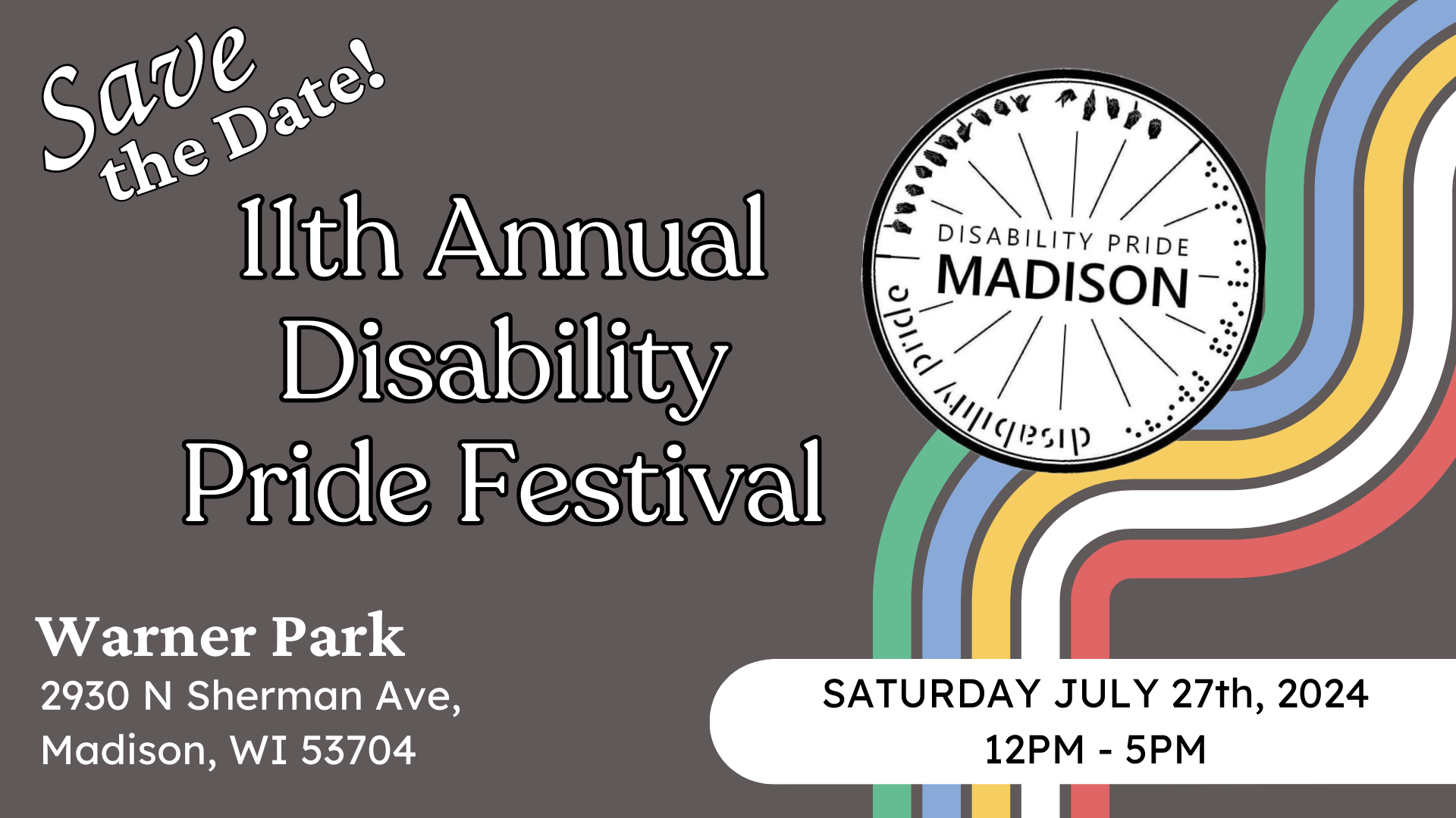 Categories Uncategorized 11th Annual Disability PRIDE Festival July 27, 2024 in Madison Post author By wibailoutpeople Post date May 26, 2024 Disability Pride Madison linktr.ee/DisabilityPrideMadison Share this: Click to share on X (Opens in new window) X Click to share on Facebook (Opens in new window) Facebook Like Loading... Related ← Madison PRIDE Celebration June 8, 2024 → Palestine solidarity organizers to convene in Detroit