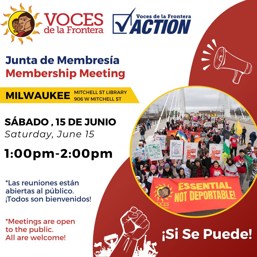 Categories Uncategorized Milwaukee, June 15, 2024: Voces de la Frontera Membership Meeting Post author By wibailoutpeople Post date June 2, 2024 Voces de la Frontera Share this: Click to share on X (Opens in new window) X Click to share on Facebook (Opens in new window) Facebook Like Loading... Related ← PFLP: Biden is partner in war crimes against our people, not to be trusted → Appleton, June 2, 2024: Free Palenstine Kickball Fundraiser