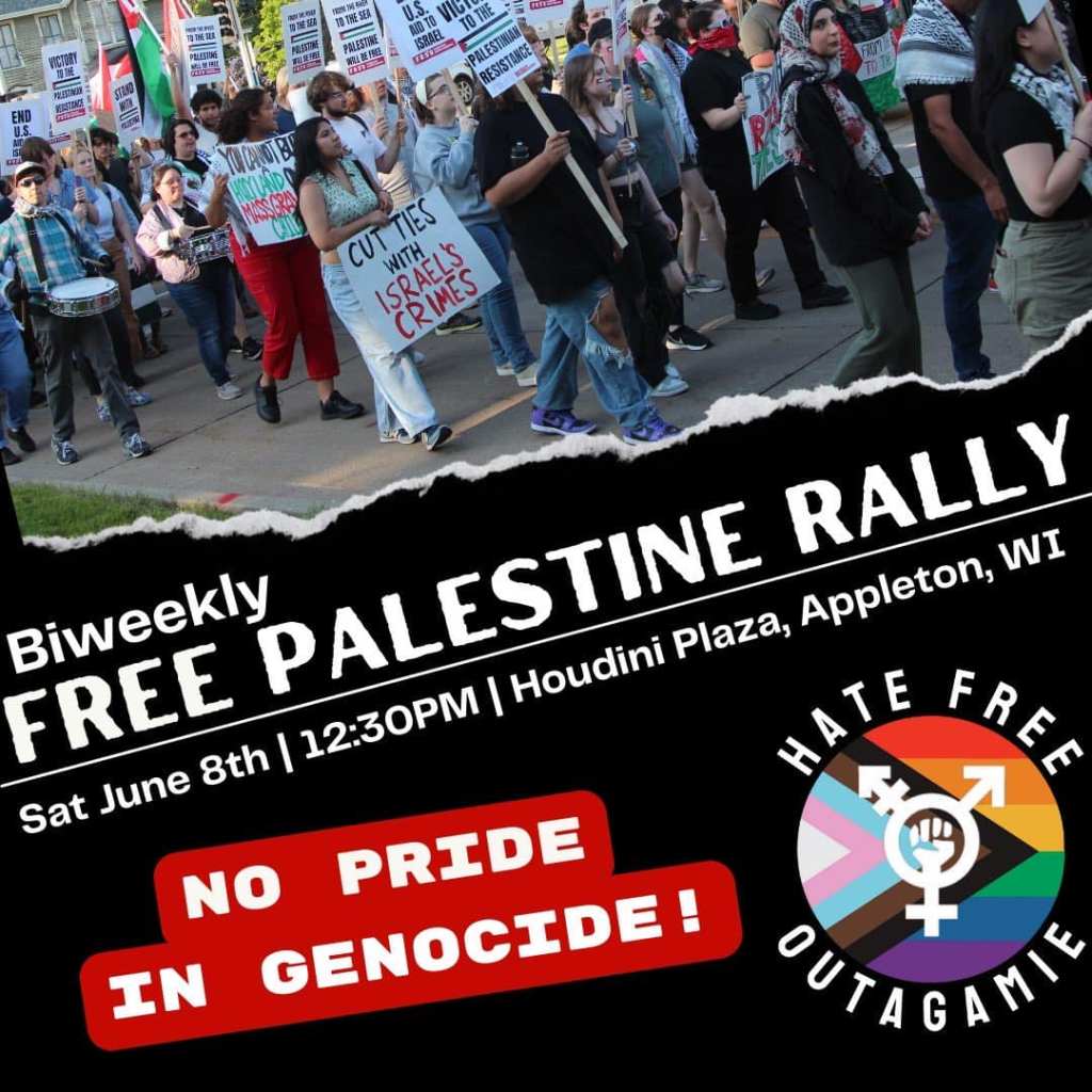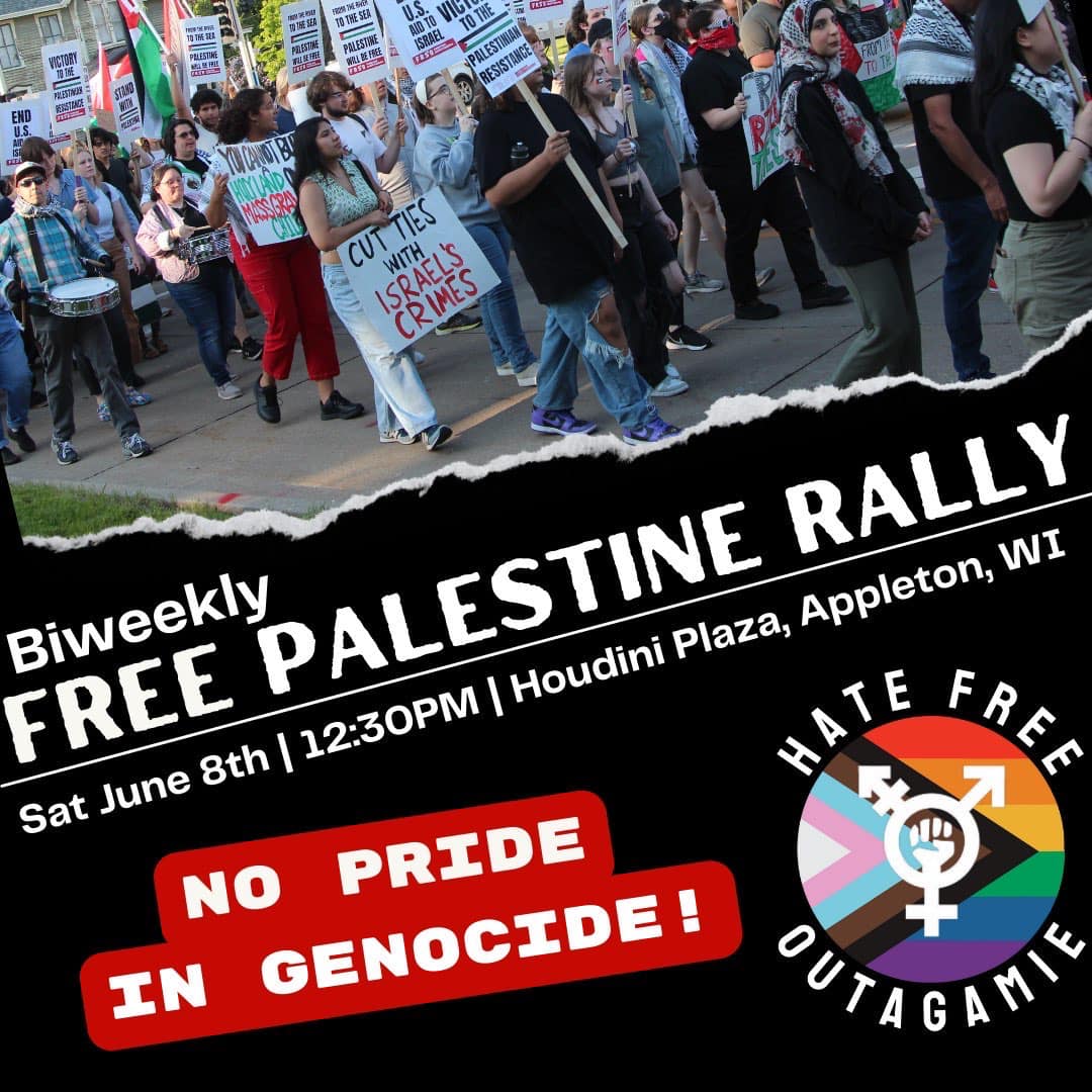 Categories Uncategorized Appleton Bi-Weekly Free Palestine! Rallies Post author By wibailoutpeople Post date June 7, 2024 Hate Free Outagamie Share this: Click to share on X (Opens in new window) X Click to share on Facebook (Opens in new window) Facebook Like Loading... Related ← Green Bay, June 14, 2024: Punks 4 Palestine Fundraiser → June 9, 2024: Worldwide Prayer/Good Energy Day for Leonard Peltier!