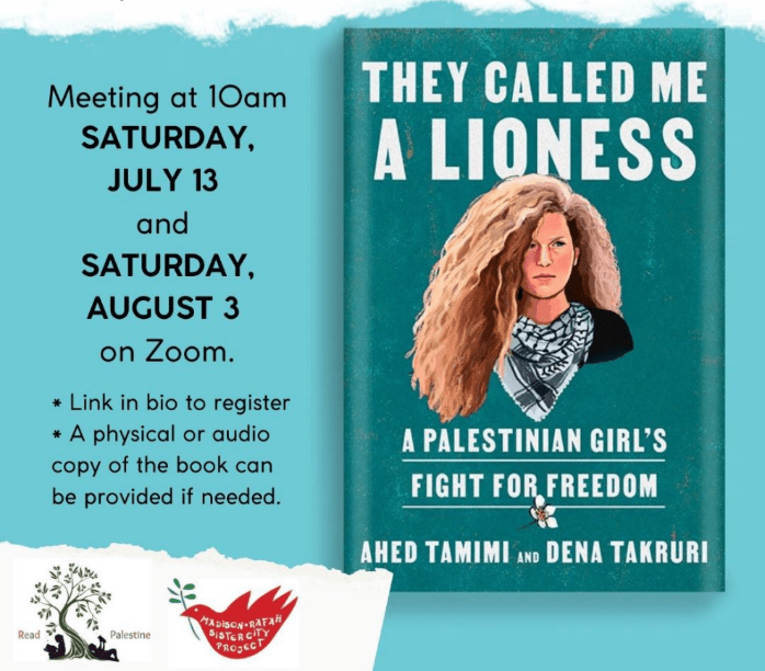 Read Palestine!, a project of Madison-Rafah Sister City Project, is hosting a book club for high school students this summer. We will read the book They Called Me a Lioness by Ahed Tamimi and Dena Takruri.