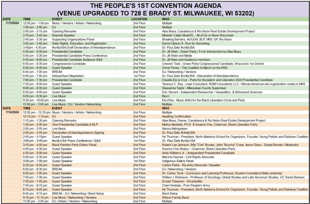 Categories Uncategorized People’s 1st Convention July 13 and 14, 2024 in Milwaukee (New Location) Post author By wibailoutpeople Post date July 13, 2024 The new location will be Casablanca on Brady St: 728 E Brady St., Milwaukee, WI https://thepeoples1stconvention.com/ Share this: Click to share on X (Opens in new window) X Click to share on Facebook (Opens in new window) Facebook Like Loading... Related ← Cuba & Palestine! → Milwaukee, August 6, 2024: Hiroshima and Nagasaki Commemoration