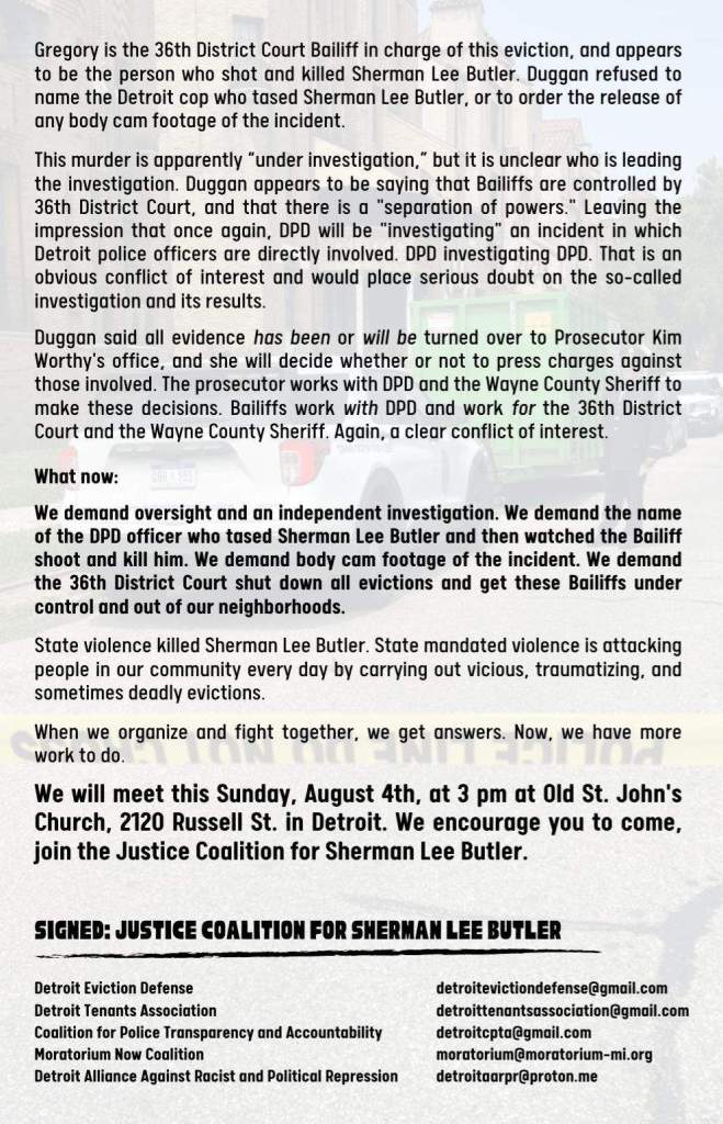 Categories Uncategorized Detroit: Justice for Sherman Lee Butler! Post author By wibailoutpeople Post date August 2, 2024 Moratorium NOW! Coalition Share this: Click to share on X (Opens in new window) X Click to share on Facebook (Opens in new window) Facebook Like Loading... Related ← Waukesha, August 17, 2024: Sophia’s 3rd Annual Multicultural Fair → Madison, August 18, 2024 – MAGIC PRIDE!