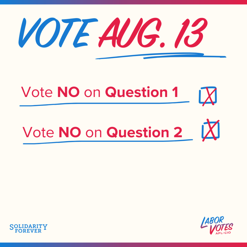 The Wisconsin AFL-CIO recommends union members Vote NO on both statewide referendum questions.