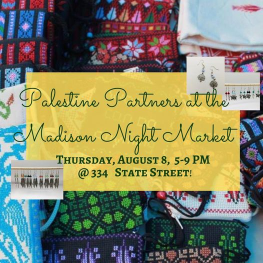 Visit the Palestine Partners Booth at the Madison Night Market for lovely Palestinian embroidery, posters, and the chance to sponsor an olive tree. Updates and more info here.