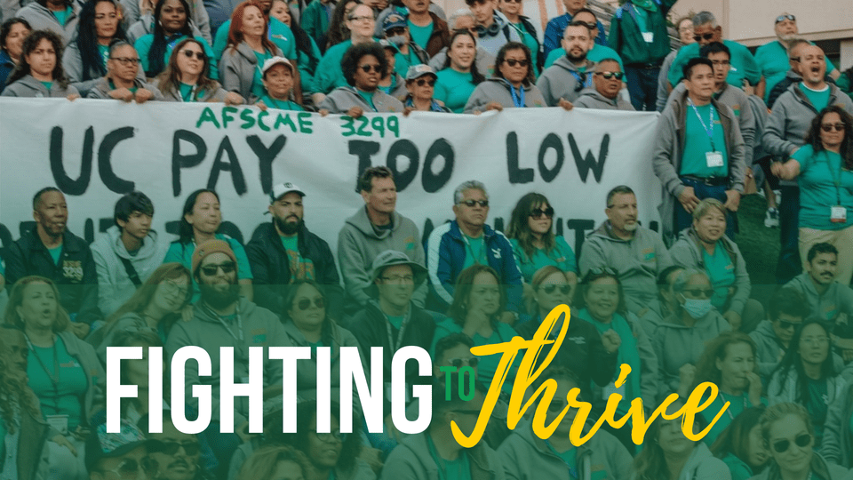 Thousands of AFSCME members who work for the University of California system took to the streets at UC campuses throughout the state to demand a fair contract. They were supported by students and community allies.