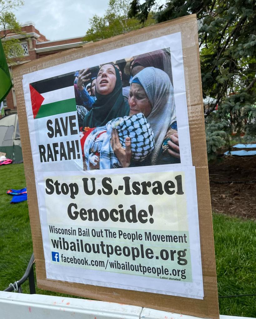 Categories Uncategorized University of Wisconsin–Milwaukee Suspends Pro-Palestinian Student Groups Post author By wibailoutpeople Post date August 15, 2024 To learn more about the events surrounding the suspension, check out this Milwaukee Leader article. Free Palestine! Encampment at UW Milwaukee, May 2024.Photo: Wisconsin Bail Out The People Movement Share this: Share on X (Opens in new window) X Share on Facebook (Opens in new window) Facebook Like Loading... Related ← Defend our right to rally for Palestine at the DNC! → Wisconsin Bus to the DNC Protests in Chicago – (Information)