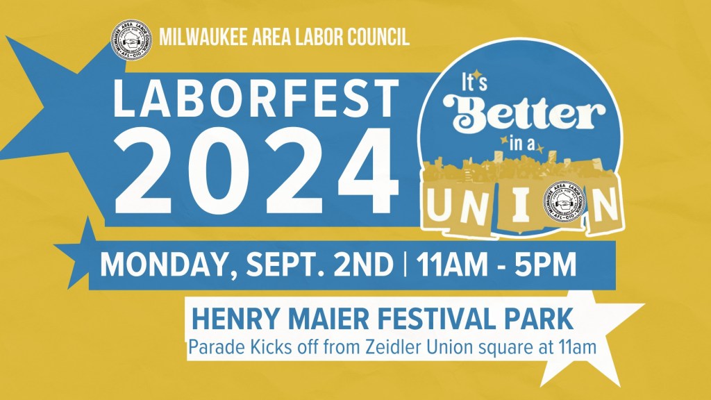Categories Uncategorized Milwaukee, September 2, 2024 – LaborFest Post author By wibailoutpeople Post date August 25, 2024 Milwaukee Area Labor Council Event Link: https://www.facebook.com/share/K2V95CuQZEMgHLsd/ Share this: Share on X (Opens in new window) X Share on Facebook (Opens in new window) Facebook Like Loading... Related ← Milwaukee Area Labor Council 65th Anniversary Celebration September 21, 2024 → While the U.S. neglects democracy at home, self-determination prevails in Venezuela despite attacks to the electoral system