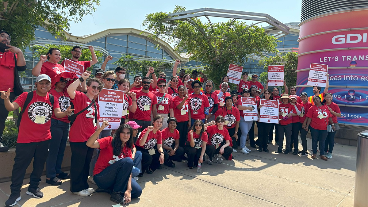 Food service workers employed by Master ConcessionAir at DCA held informational pickets this week asking for a fair process to decide whether to form a union without threats and intimidation. Among the employees’ demands is a greater accommodation of the needs of immigrants working at the airport.
