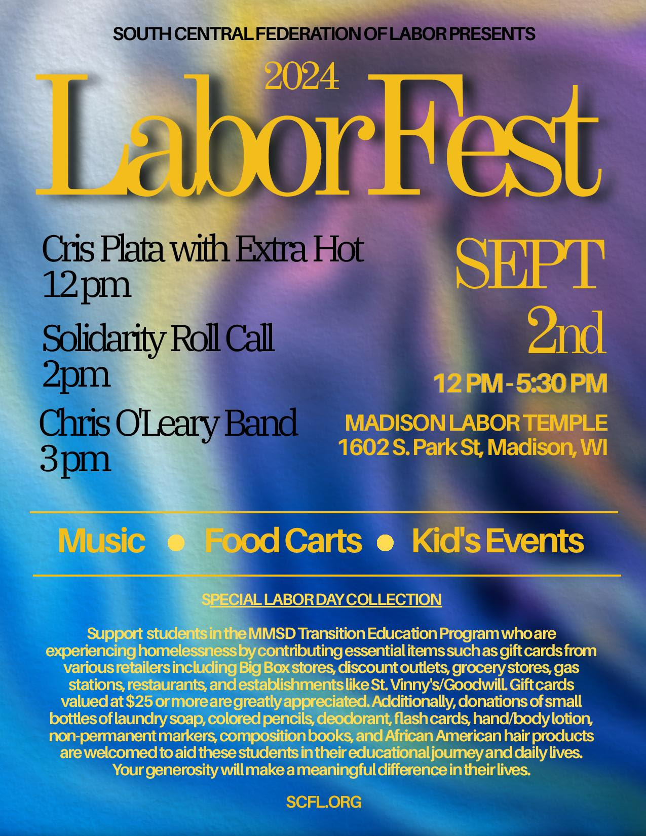 Categories Uncategorized Madison, September 2, 2024: LaborFest Post author By wibailoutpeople Post date August 31, 2024 Share this: Click to share on X (Opens in new window) X Click to share on Facebook (Opens in new window) Facebook Like Loading... Related ← MILWAUKEE: LaborFest September 2, 2024 → La Crosse, WI September 7, 2024: Pride in the Park