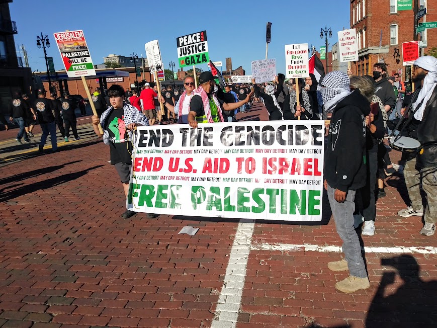 Earlier that morning, Vice-President Kamala Harris made a presidential campaign appearance at a nearby establishment where she met with union leaders. Palestine solidarity activists held a rally across the streets on Trumbull at Michigan where they chanted slogans calling for the end to unconditional support from the U.S. government to the occupying forces in Palestine.