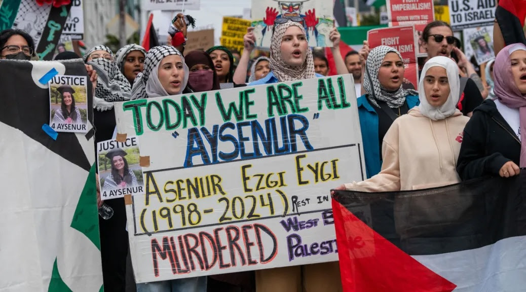 Last Friday, an Israeli sniper shot American citizen Aysenur Ezgi Eygi in the head. She was peacefully protesting against illegal Israeli settlements in the Occupied West Bank. Aysenur was 26 years old.