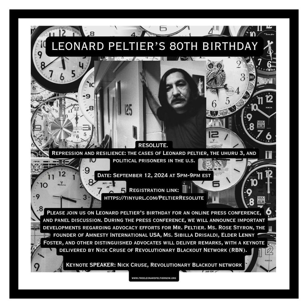 Categories Uncategorized LEONARD PELTIER’S 80TH BIRTHDAY – ONLINE MEETING Post author By wibailoutpeople Post date September 12, 2024 Leonard Peltier ad hoc committee Share this: Share on X (Opens in new window) X Share on Facebook (Opens in new window) Facebook Like Loading... Related ← Massacres in Gaza by U.S. and ‘Israel’ – Ongoing Genocide as 34 More Dead and 96 Injured as International Condemnation Mounts → Southern Workers Assembly (SWA): Marking 12 Years of People’s Struggle!
