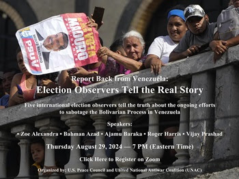 The people of Venezuela voted to re-elect their president, Nicolas Maduro on July 28. This, despite the interference and harsh sanctions imposed by the US to try and defeat President Maduro and put an end to the Bolivarian Revolution. With no proof whatsoever, the US claims that the elections were not fair, but the electoral process in the US pales in comparison to that of Venezuela. In Venezuela the National Electoral Council is actually elected and insures that people, even in the poorest sections of society, have the opportunity to register and vote. Ballots are cast electronically, and a backup paper ballot is also cast. All parties can observe the counting of the ballots, and any party can call for a recount.