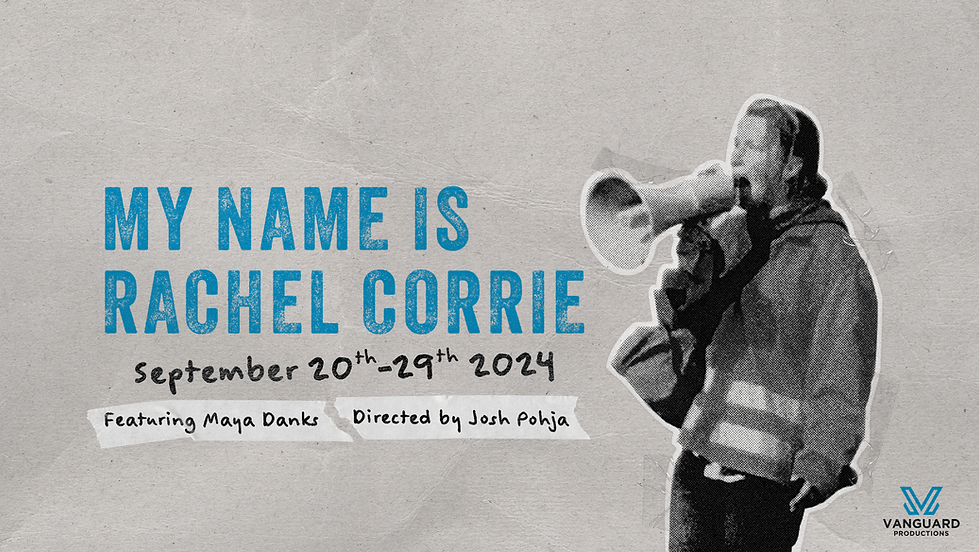 Vanguard Productions is proud to present My Name is Rachel Corrie, directed by Josh Pohja and starring Maya Danks. Drawn from the writings of American student and activist Rachel Corrie, this gripping piece of documentary theatre tells the story of an young woman who chooses to put her life on the line to resist the occupation and displacement of the Palestinian people.