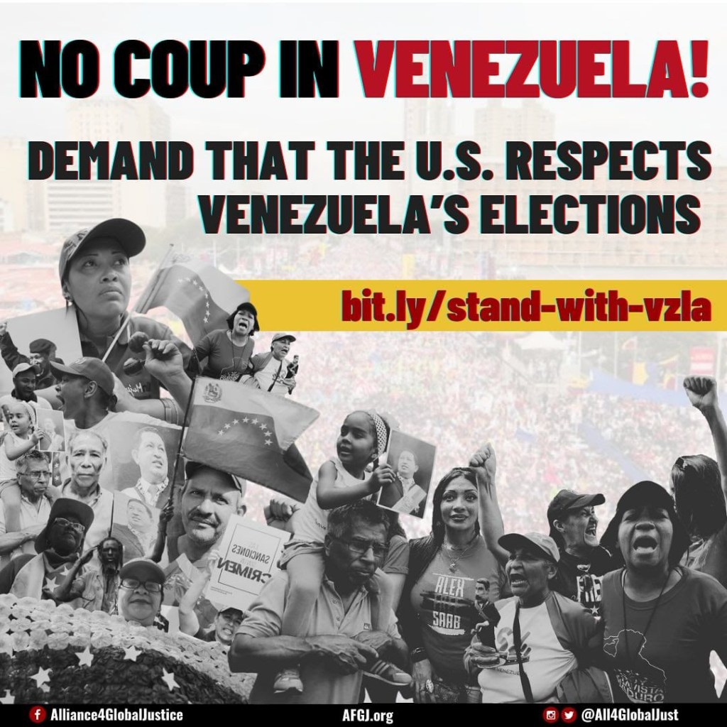 The U.S. has created obstacles to free and fair elections in Venezuela in several ways. First, through the imposition of an illegal economic blockade estimated to have caused over 40,000 Venezuelan deaths and denounced by UN rapporteurs – which it threatens to continue if the will of the Venezuelan people is reflected in the inauguration of Nicolás Maduro. Second, through its implication in repeated assassination attempts against President Maduro, who in the months leading up to Venezuela’s presidential election was leading in polls such as DataViva, CMIDE and IdeaDatos. Third, by funneling millions of dollars to civil society organizations – some of which are responsible for inciting violence against civilians following the elections. All attempts to destabilize Venezuela’s democracy are violations of international law and basic standards of diplomacy and must cease immediately. Take action!