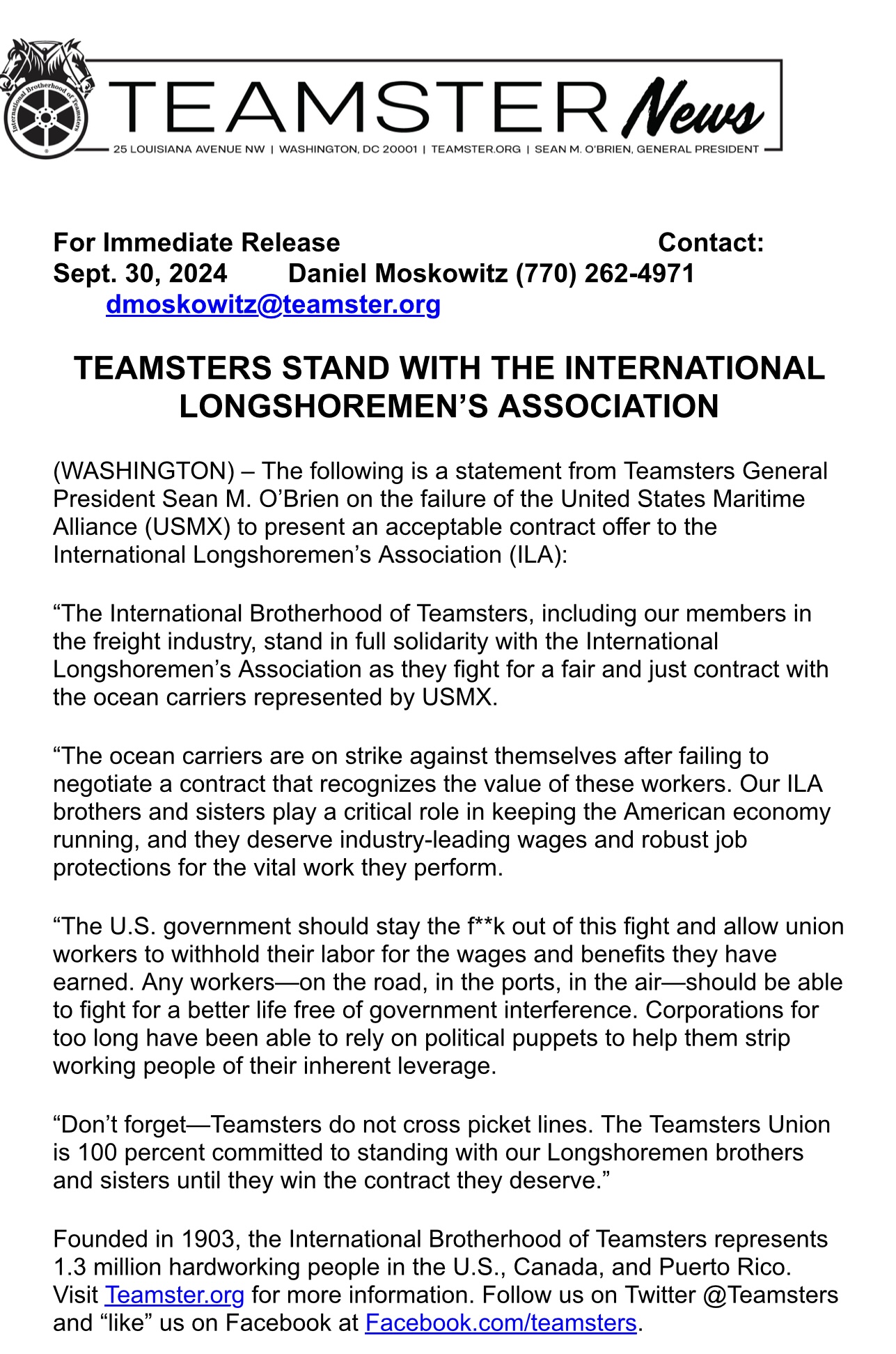 ILA Press 9/30/24 Release: https://ilaunion.org/ila-update-monday-september-30-2024-at-11-am/