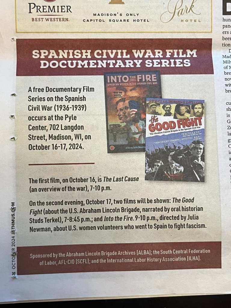 Categories Uncategorized Madison, October 16-17, 2024: Spanish Civil War Film Documentary Series Post author By wibailoutpeople Post date October 11, 2024 https://www.scfl.org/ https://ialhi.org/ Homepage Share this: Share on X (Opens in new window) X Share on Facebook (Opens in new window) Facebook Like Loading... Related ← Labor Radio at WORT → BDS: Urgent Action Alert! Stop the U.S. – Israel Massacring Palestinians in Northern Gaza