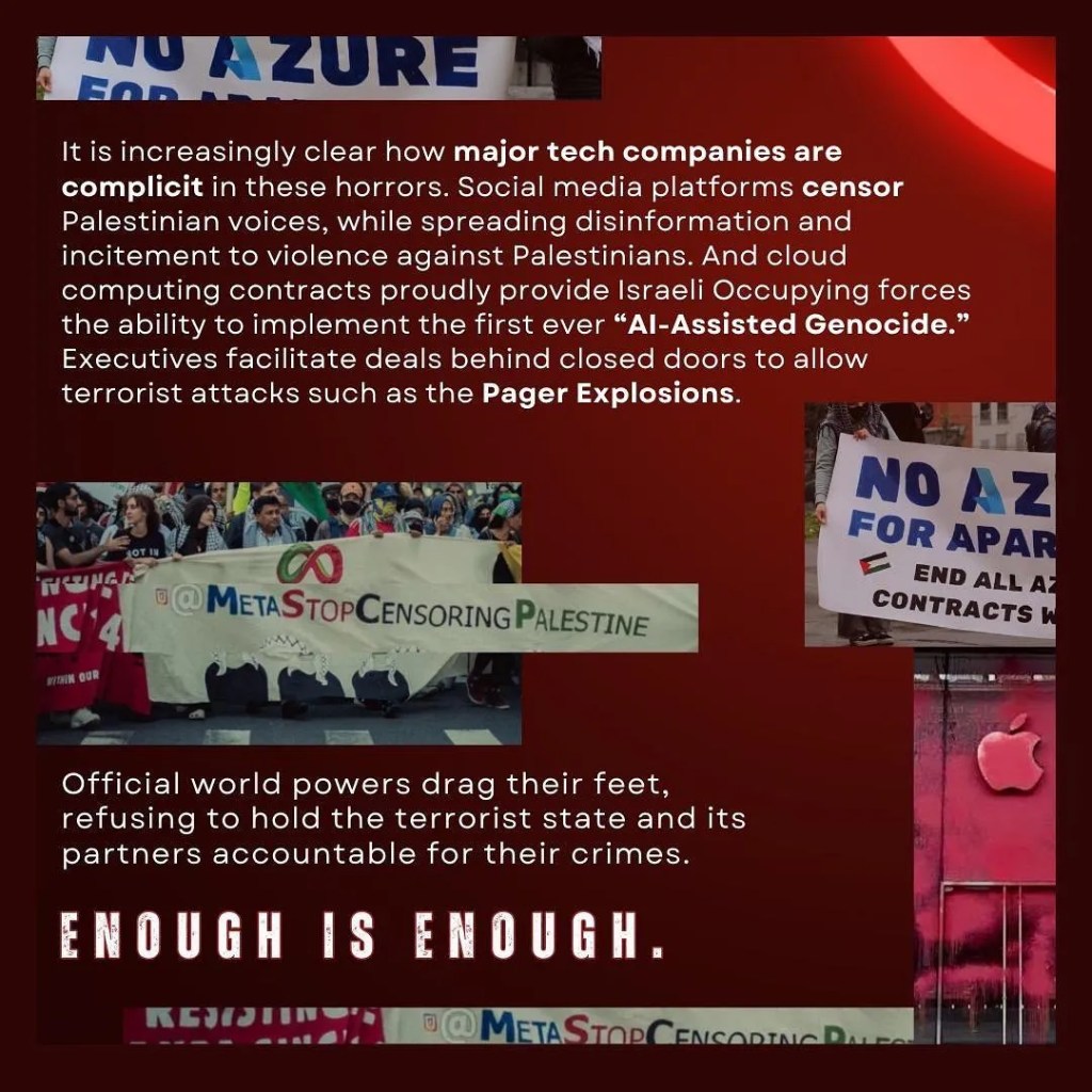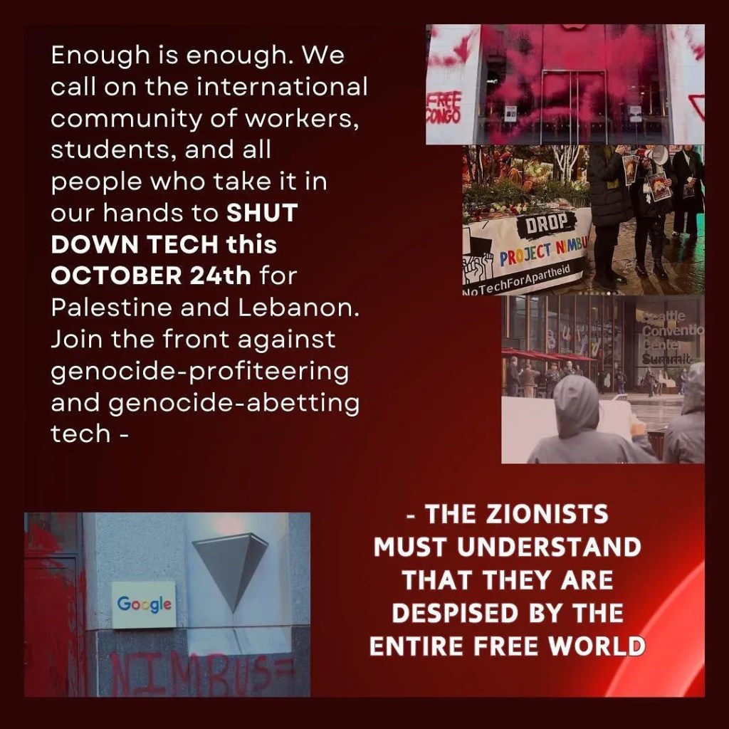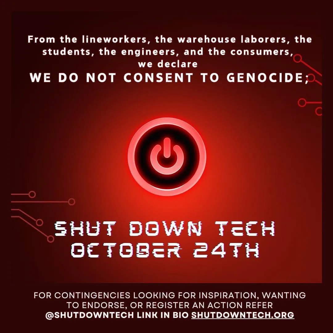 Categories Uncategorized Shut Down Tech for Palestine October 24, 2024 Post author By wibailoutpeople Post date October 17, 2024 https://shutdowntech.org/ Share this: Click to share on X (Opens in new window) X Click to share on Facebook (Opens in new window) Facebook Like Loading... Related ← UW-Milwaukee 10/17/24: Students and Workers Protest War Criminal V.P. Kamala Harris; Demand an End to U.S.-Israel Genocide (Videos) → Local 300-CGSU Fights Suspension, Prevents Deportation of Member (UE News)