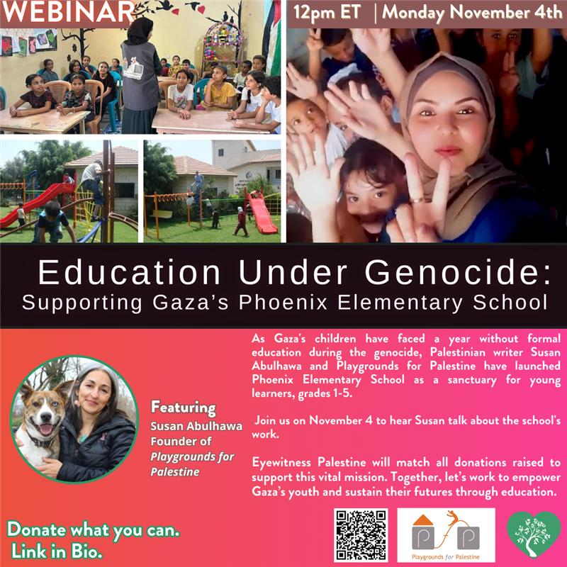 Eyewitness Palestine will match all donations raised from this event to support the Phoenix Elementary School’s mission. Together, let’s empower Gaza’s young voices and help them reclaim the education and futures they deserve.