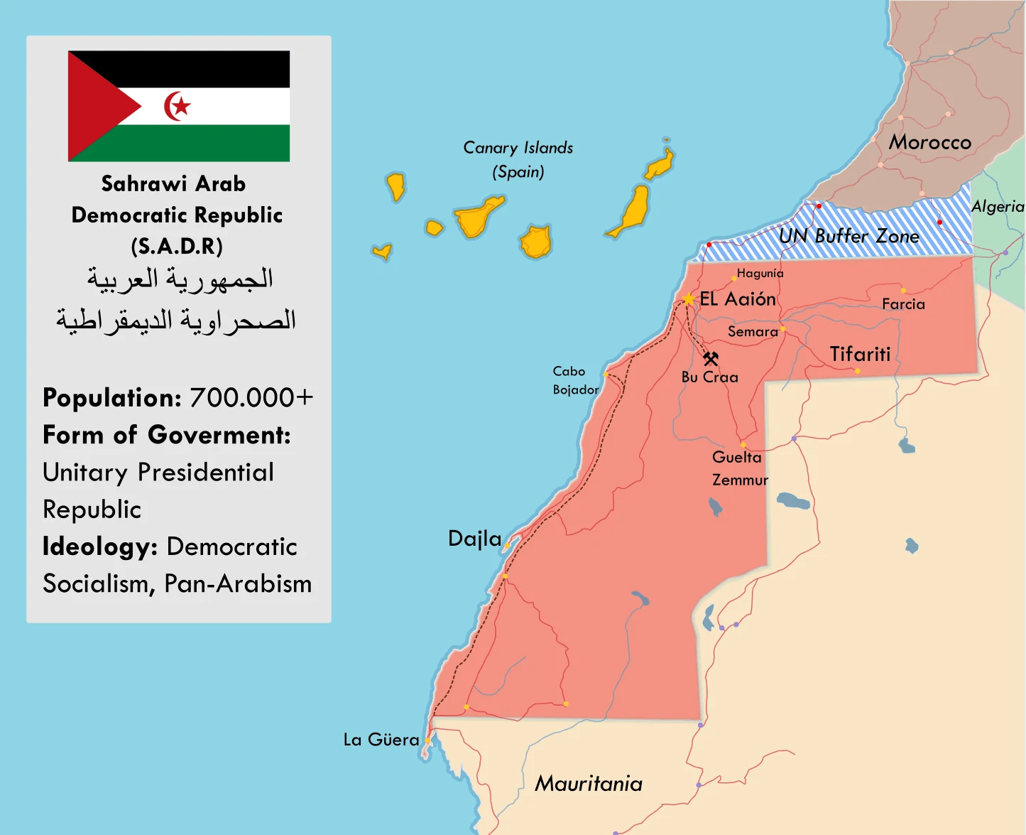 Since the Western Sahara was a colony of Spain, it would be entitled to independence as all other African territories on the continent. To make an exception to the SADR in favor of the Kingdom of Morocco which is allied with the imperialist states such as France, Spain and the United States constitutes a grave injustice to the indigenous people.