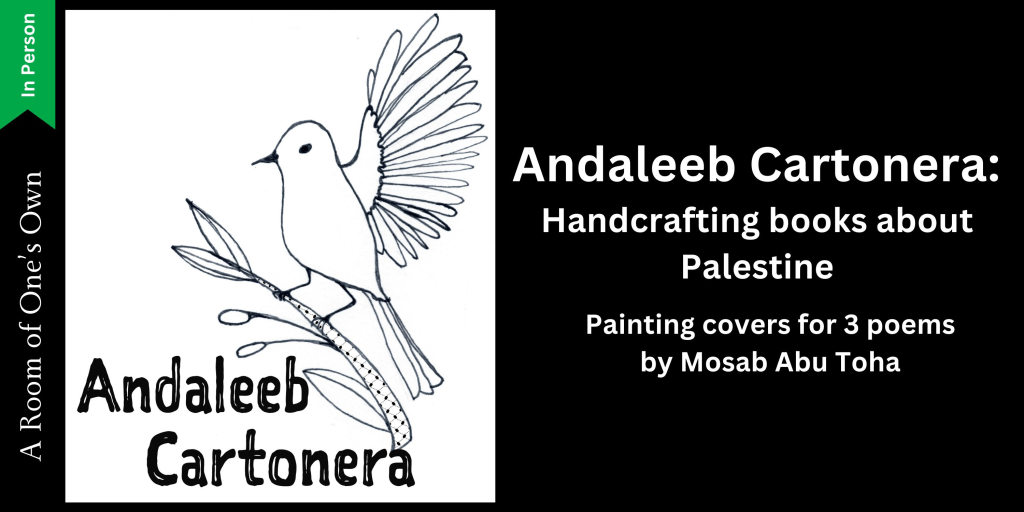 Everyone is invited to another Andaleeb Cartonera workshop to make cardboard covers for books, hosted once again by the great folks at A Room of One’s Own. Come and support Palestinian liberation and speaking truth to power with this amazing and beautiful new project.