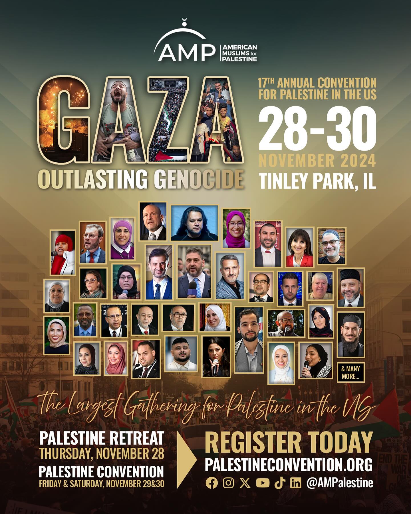 Categories Uncategorized American Muslims for Palestine Convention, November 28-30, 2024 in Tinley Park, IL Post author By wibailoutpeople Post date November 20, 2024 American Muslims for Palestine Share this: Click to share on X (Opens in new window) X Click to share on Facebook (Opens in new window) Facebook Like Loading... Related ← Madison’s 28th Annual Fair Trade Holiday Festival – Madison-Rafah Sister City Project → Madison, November 29-December 6, 2024: Read Palestine Week